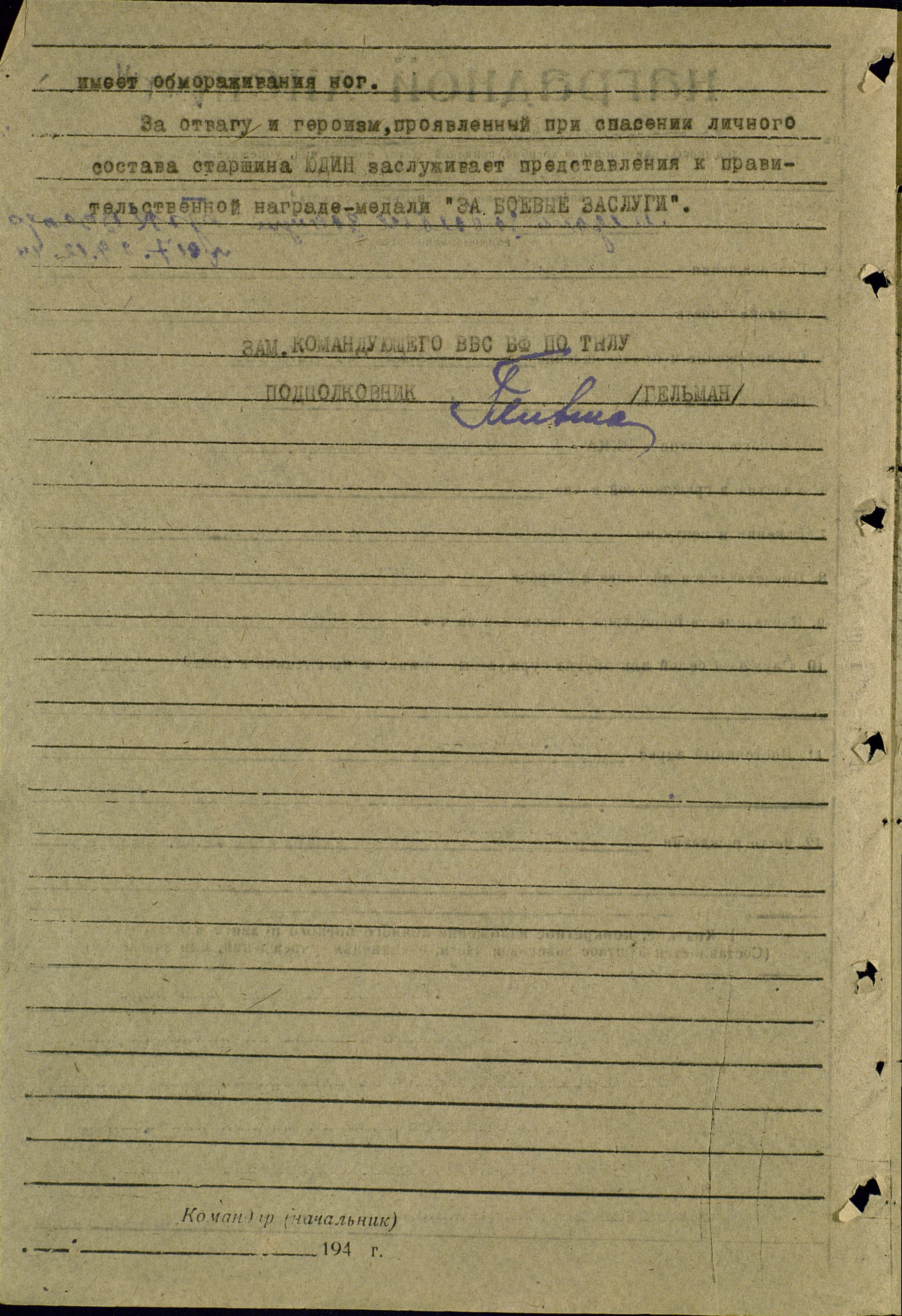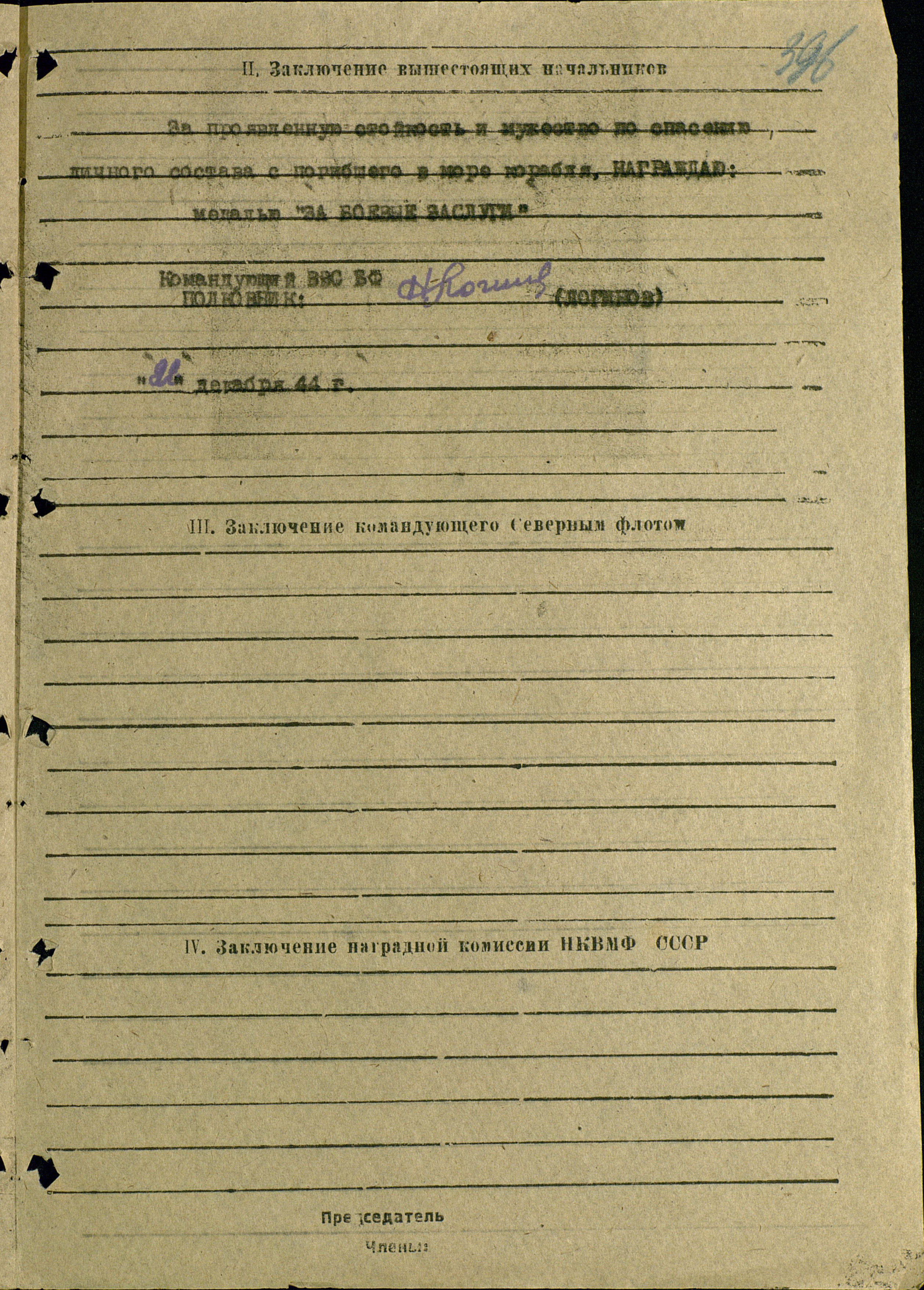 Наградной лист.