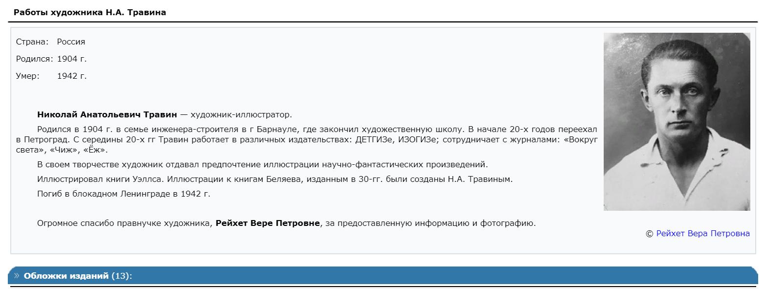 Иллюстрации к книгам А. Беляева, изданным в 1930-гг. были созданы Н.А. Травиным.