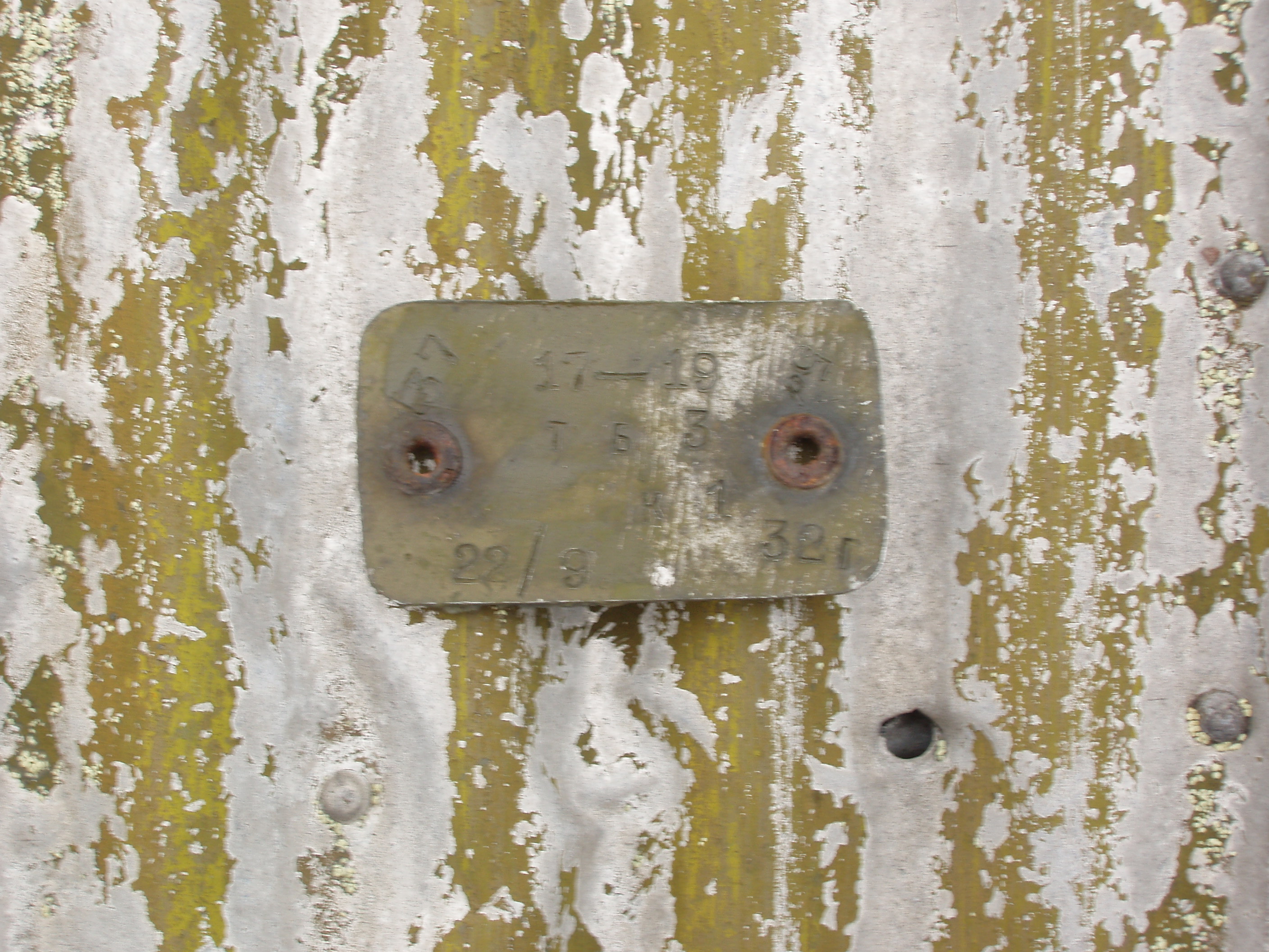 Кроме того в этом районе находиться еще один самолет марки ТБ-3. Состав экипажа нам не известен. История аварии ТБ-3 похожа с аварией Р-6, поэтому из-за этого до настоящего времени, происходила путаница с этим двумя самолетами. При тьщательном осмотре этого самолета, нам удалось найти две маркировочные таблички, а так же номер или часть бортового номера этого самолета. К сожалению я незнаю как расшифровываются цифры на маркировках, поэтому постараюсь приложить фотки, и ниже часть иформации, что у меня есть по этому самолету: