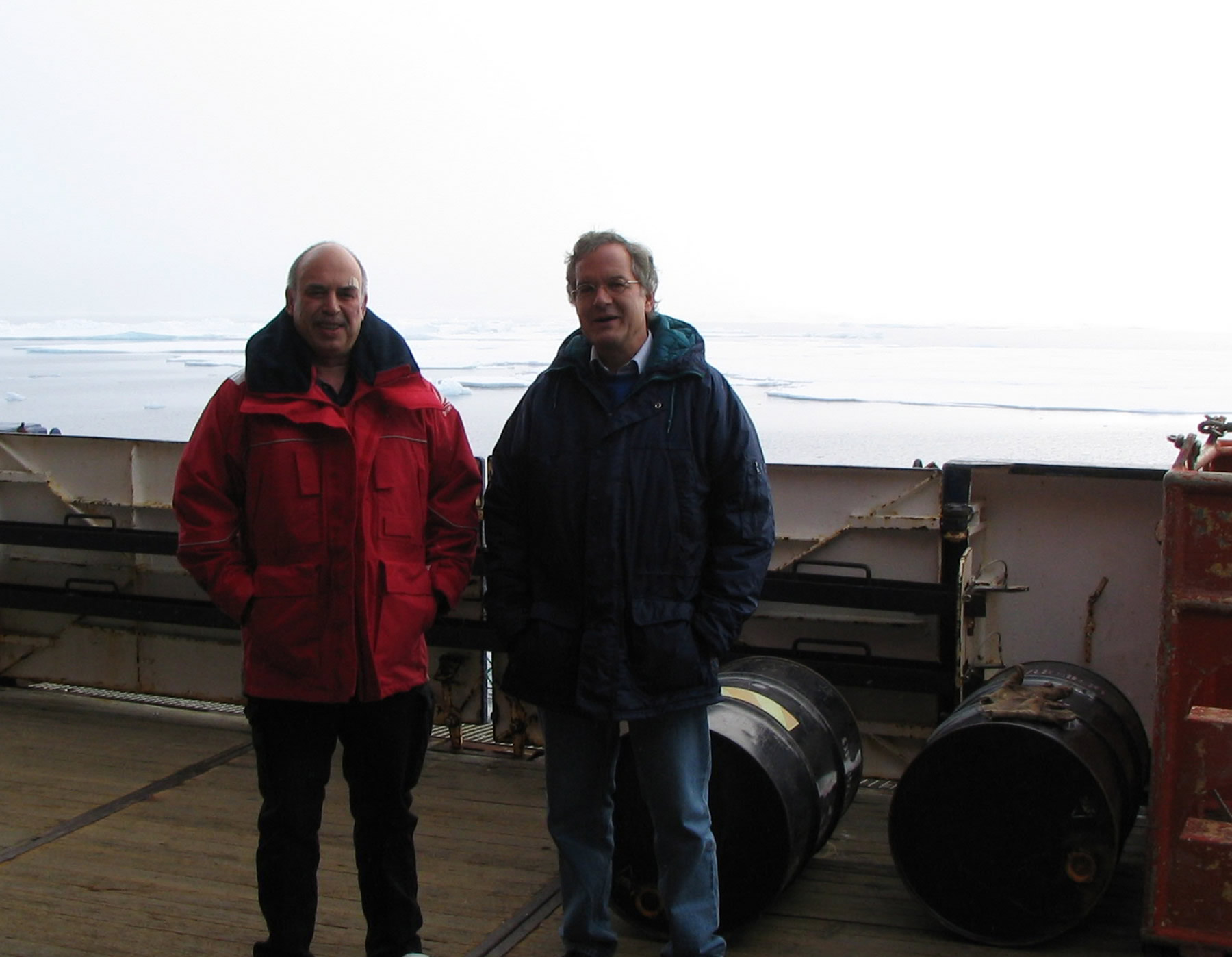 On August 16, 2004 early in the morning the German research vessel RV Polarstern discovered the remains of the abandoned Russian drifting ice camp North Pole-32 on an ice floe. The position of the floe was 82°16`N – 004°21`W. Three more or less intact barracks (one with antenna), one tent, two damaged barracks, two tractors, three larger fuel depots with about 300 drums, sleeping bags, nets and other material were found. In one of the barracks a calendar was found with the last entry date March 6, 2004. Two thirds of the drums were empty. Ninety percent of the full drums contained diesel, the rest contained remains of petrol, oil and kerosene.