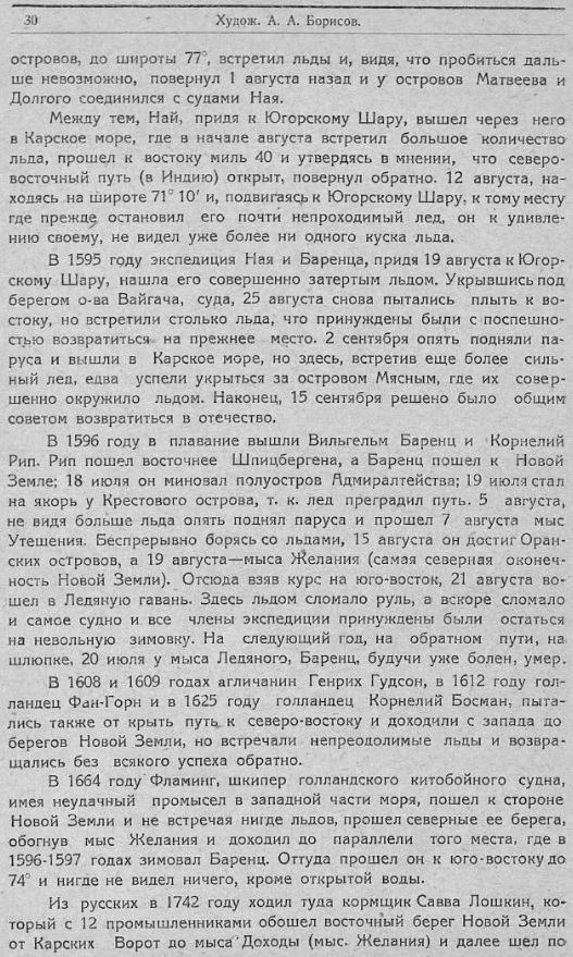 [26] Борисов А.А. 1902. На Новую Землю. Очерк полярного путешествия А.А.Борисова // Нива. № 21. С. 411-419.