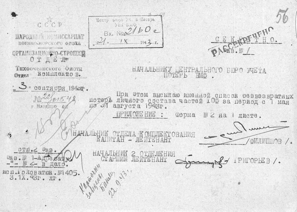 34 Сентяков Владимир Александрович Кочегар 2 класса 1924 Погиб при торпедировании