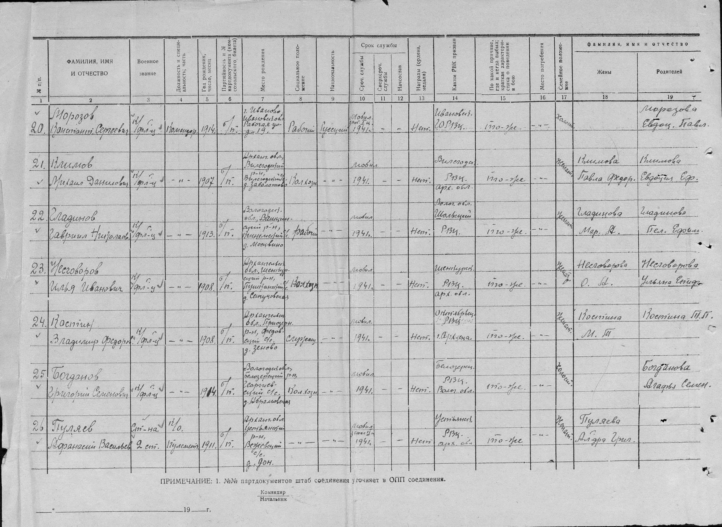 Дата и место призыва __.__.1941 Вилегодский РВК, Архангельская обл., Вилегодский р-н