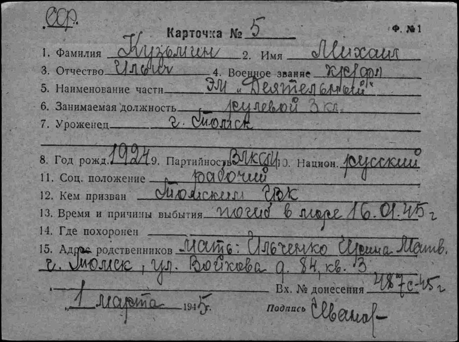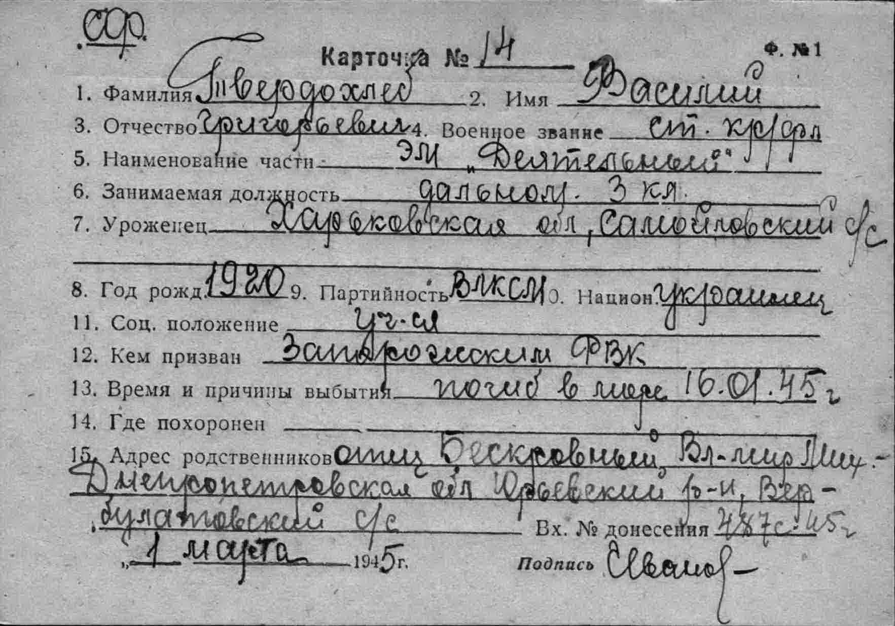 Дата выбытия 16.01.1945