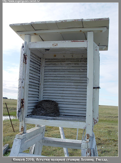 Мы посетили район мыса 31 июля 2008 г., в этот день мы работали на береговых обрывах к юго-востоку от полярной станции. Печальное впечатление производит брошенное поселение. Во всех домиках выбиты стекла, только у одного окна затянуты полиэтиленовой пленкой. У разбитой радиостанции - пачка телеграмм 1992-1994 гг из Диксона и в Диксон - приняли топливо, получили продукты, просим прислать запасные детали... и т.д.