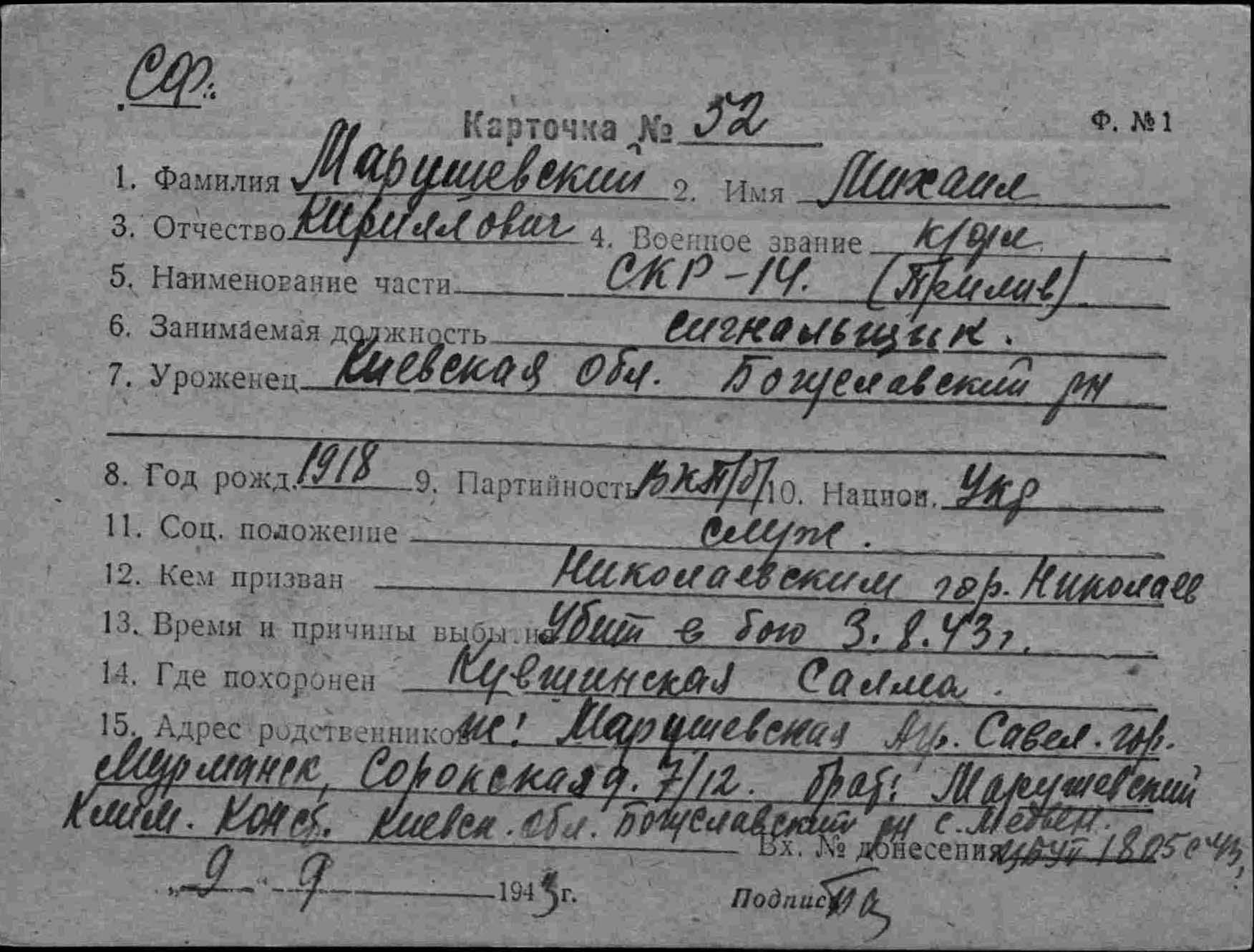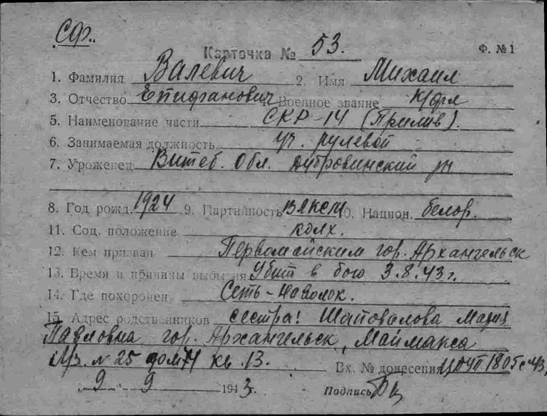 На севере. Авиация СФ прикрывала главную базу, наши ска МО и конвои. Противник в Мотовском заливе повредил 2 мотобота (1 из них выбросился на берег) и 2 ска МО, вышедших для оказания им помощи, а у Кильдина потопил СКР-14, личный состав которого подобран ска МО-134