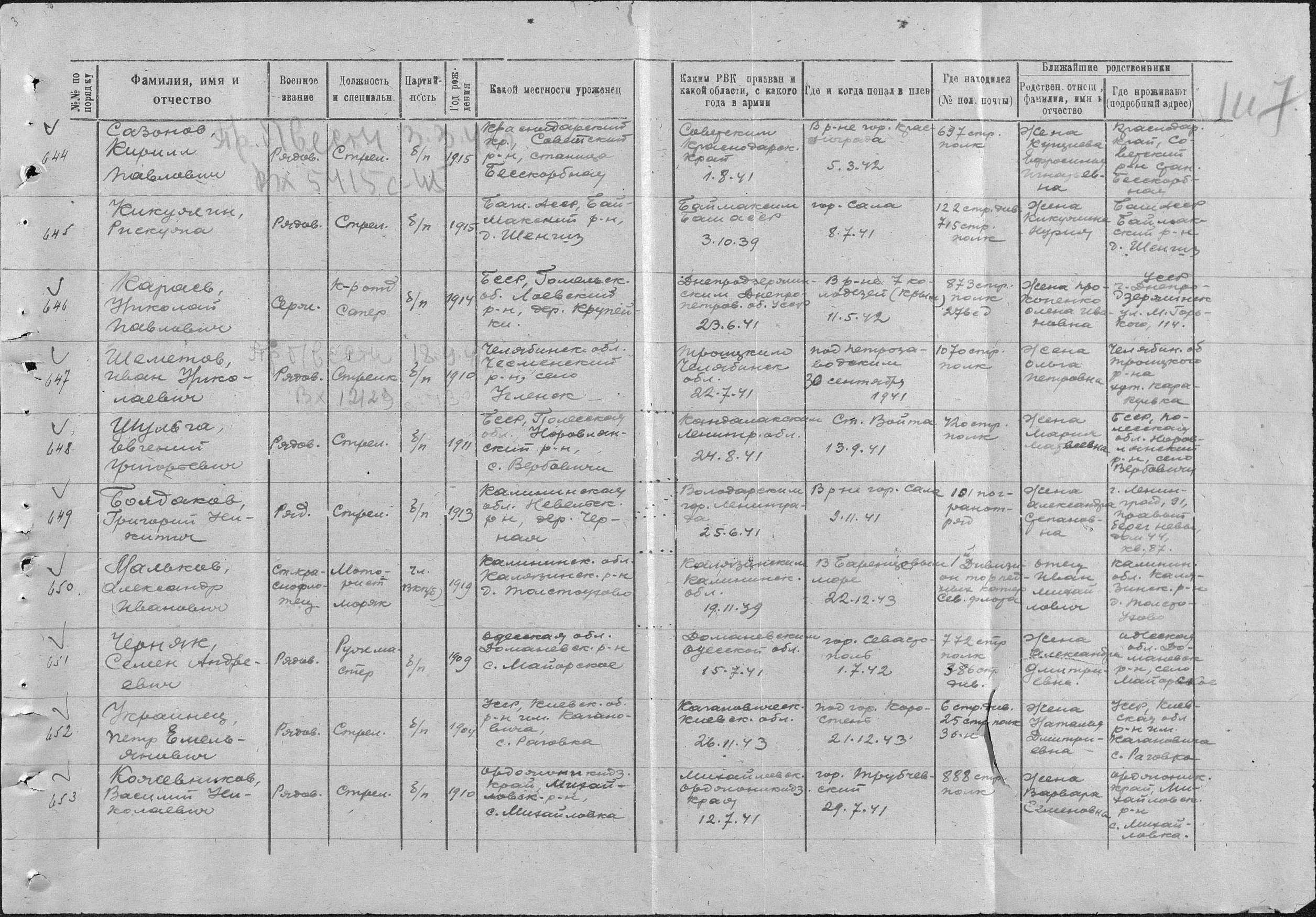 Дата выбытия 24.12.1943