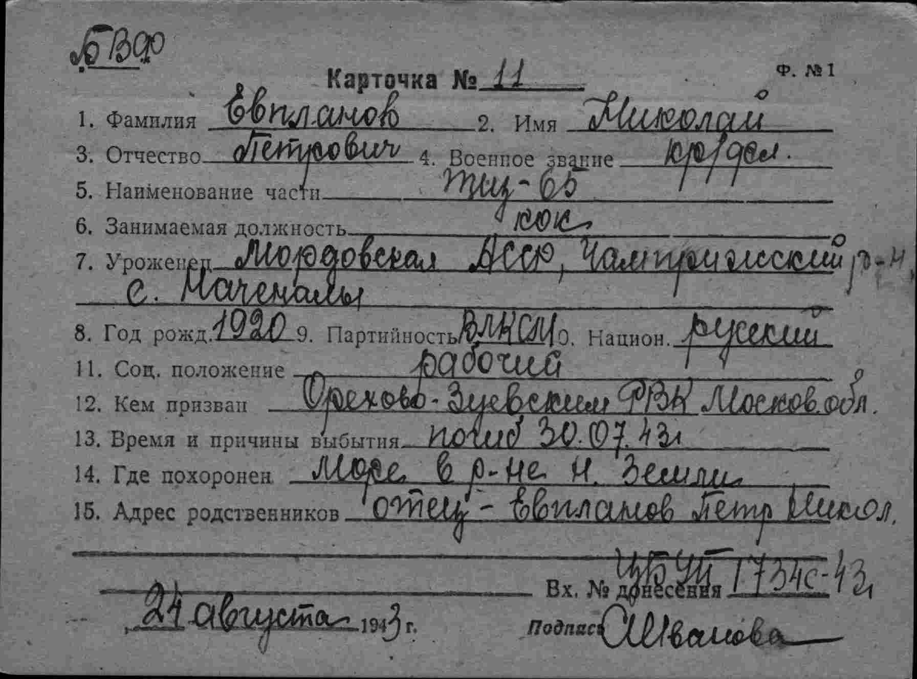 17. Евпланов Н.П. (1920), краснофлотец, кок