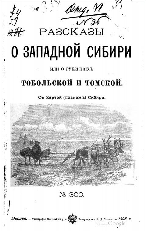 Рассказы о Западной Сибири или о губерниях Тобольской и Томской и как там живут люди. Москва, изд-во Сытина, 1898.