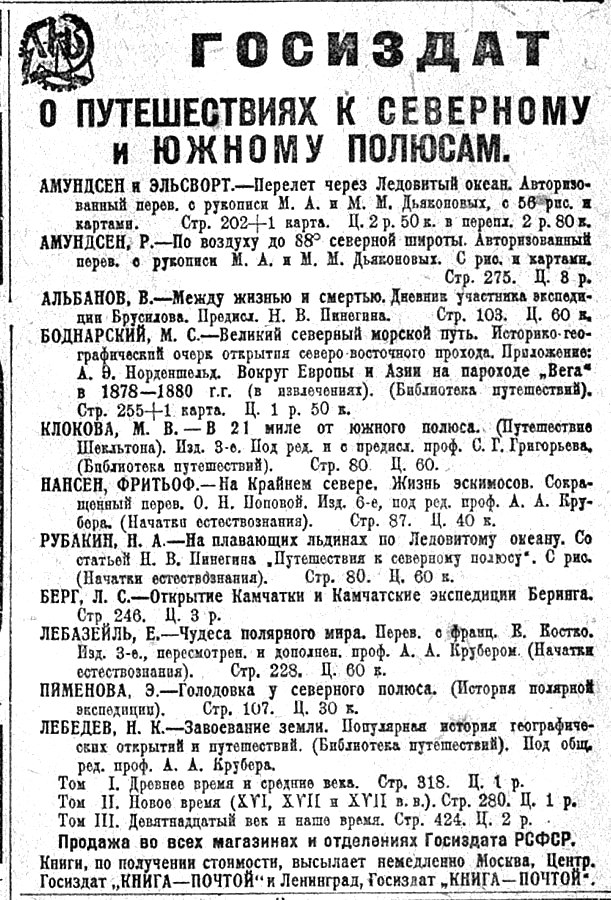 Новейшая литература об Арктике и арктических странах//Лебедев Н. К. Арктика. Москва ; Ленинград : Гос. Уч.-пед. Изд-во, 1932