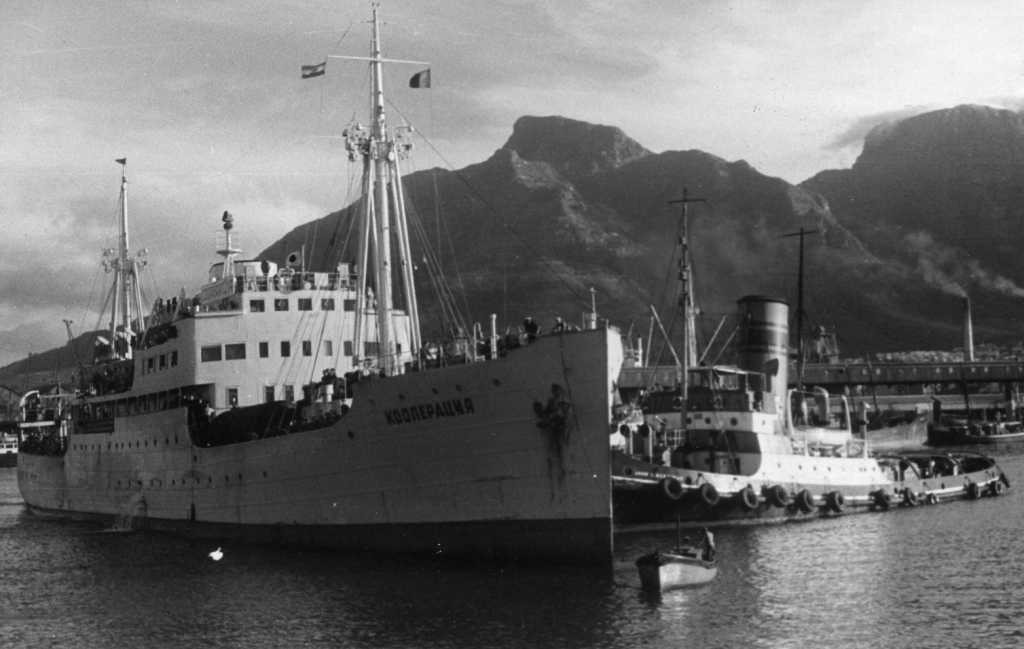 Теплоход Кооперация с 3-ей экспедицией отчалил из Калининграда 1 ноября 1957 года. По оптимистичным расчётам путь до Мирного должен был составить 50 суток..."