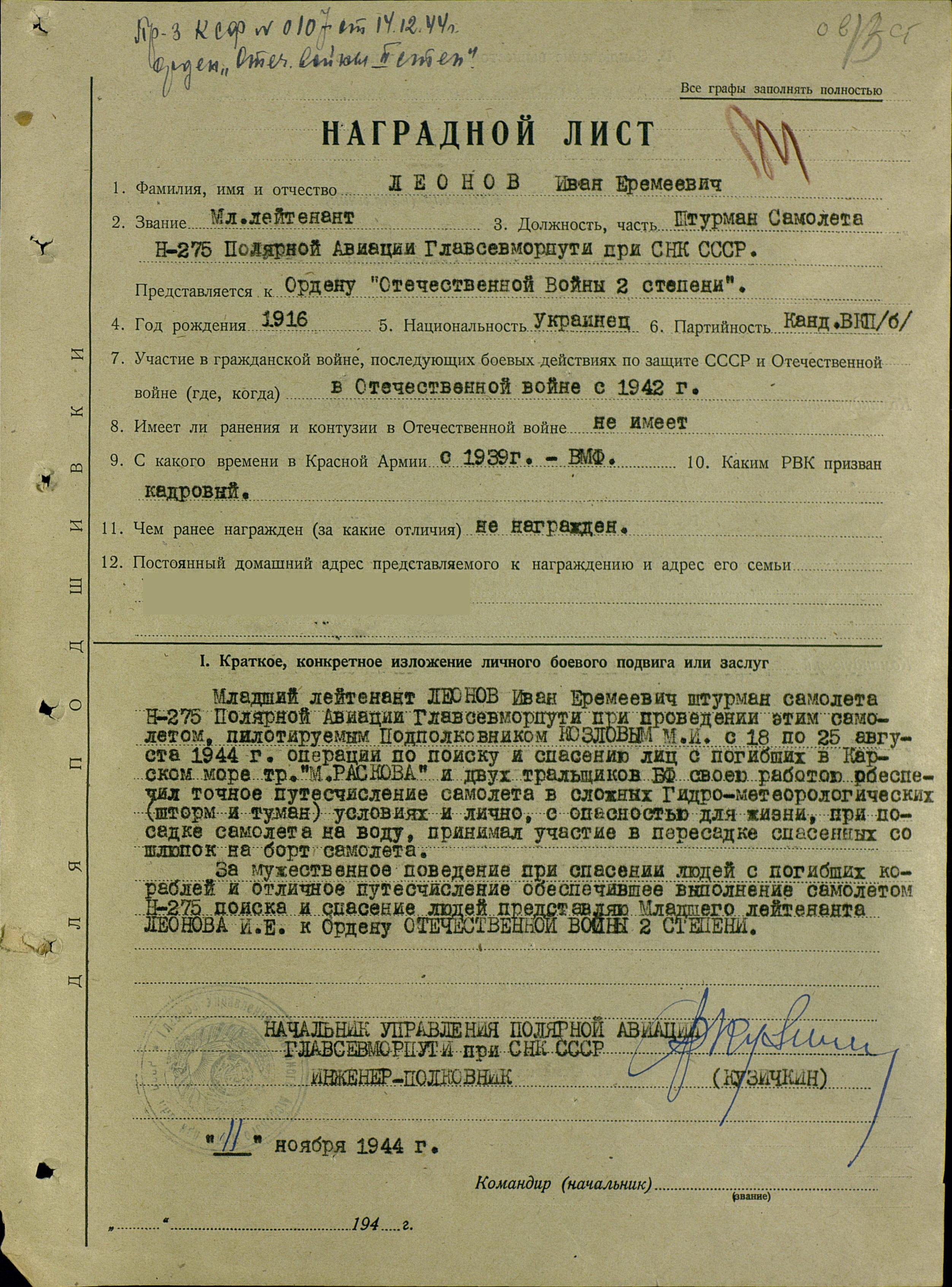 Иван Кукушкин пишет:Фотография Н-275 предоставлена из архива семьи Черевичных.