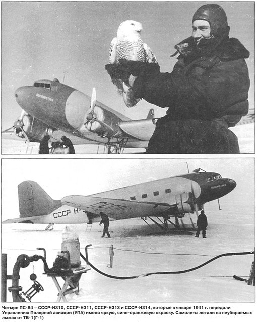 "Четыре ПС-84 - СССР-Н310, СССР-Н311, СССР-Н-313, СССР-Н314 - в январе 1941 года передали Управлению Полярной авиации (УПА). В феврале 1941 ПС-84 Н-311 пилота Н.Г.Крузе включили в состав Ленской авиагруппы для проведения испытаний и опытных работ."