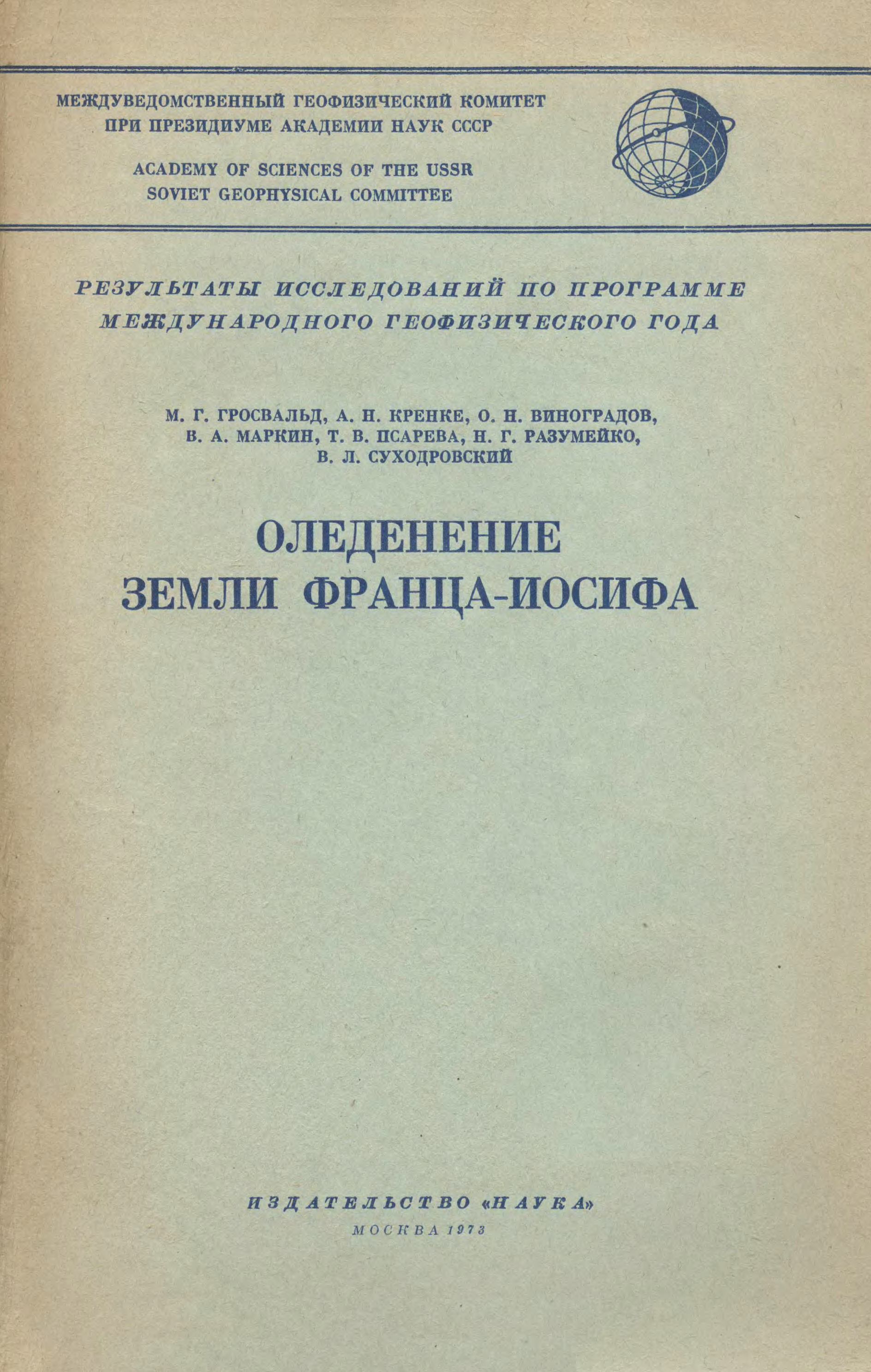 Гросвальд М.Г., А.Н. Кренке, О.Н. Виноградов, В.А. Маркин, Т.В. Псарева, Н.Г. Разумейко, В.Л. Суходровский. "Оледенение земли Франца-Иосифа", М., Наука, 1973