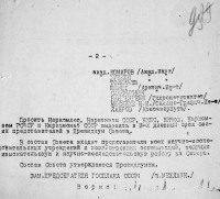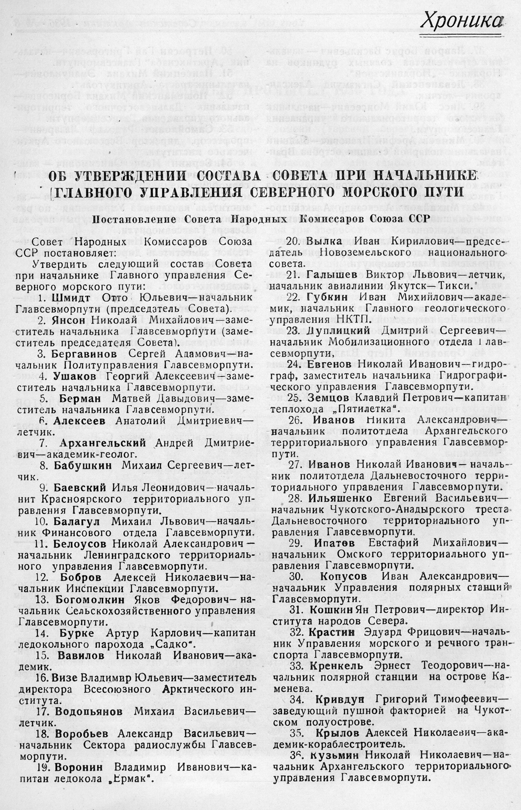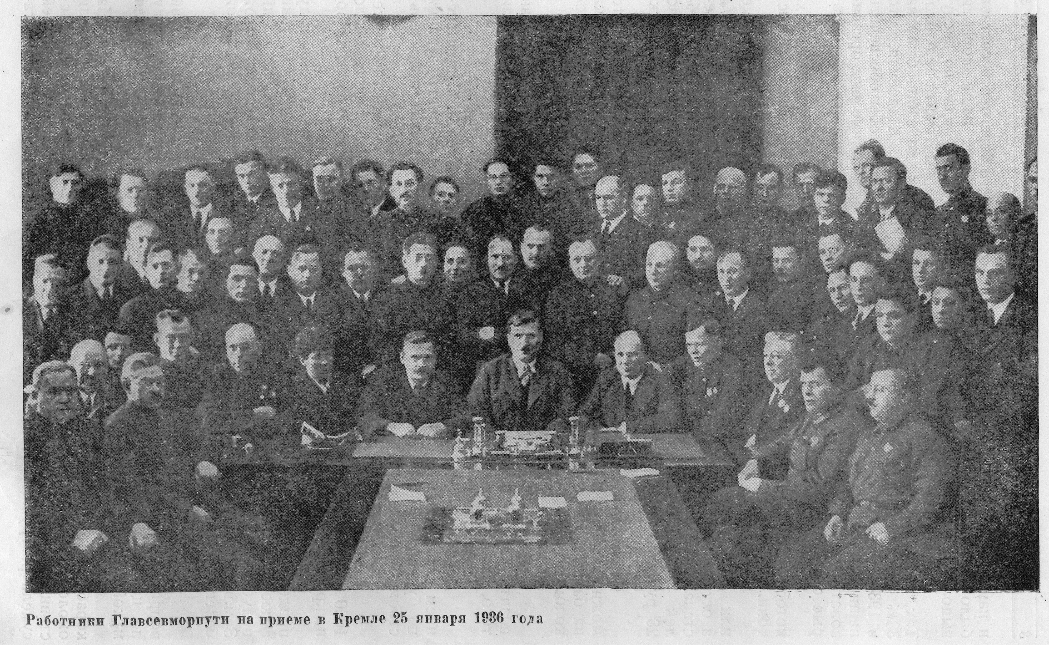 "25 января 1936 года работники Главсевморпути были приняты в Кремле заместителями председателя Совета Народных Комиссаров Союза ССР - тт. Чубарем В.Я. и Антиповым Н.К. и секретарем ЦК ВКП(б) т. Андреевым А.А.
