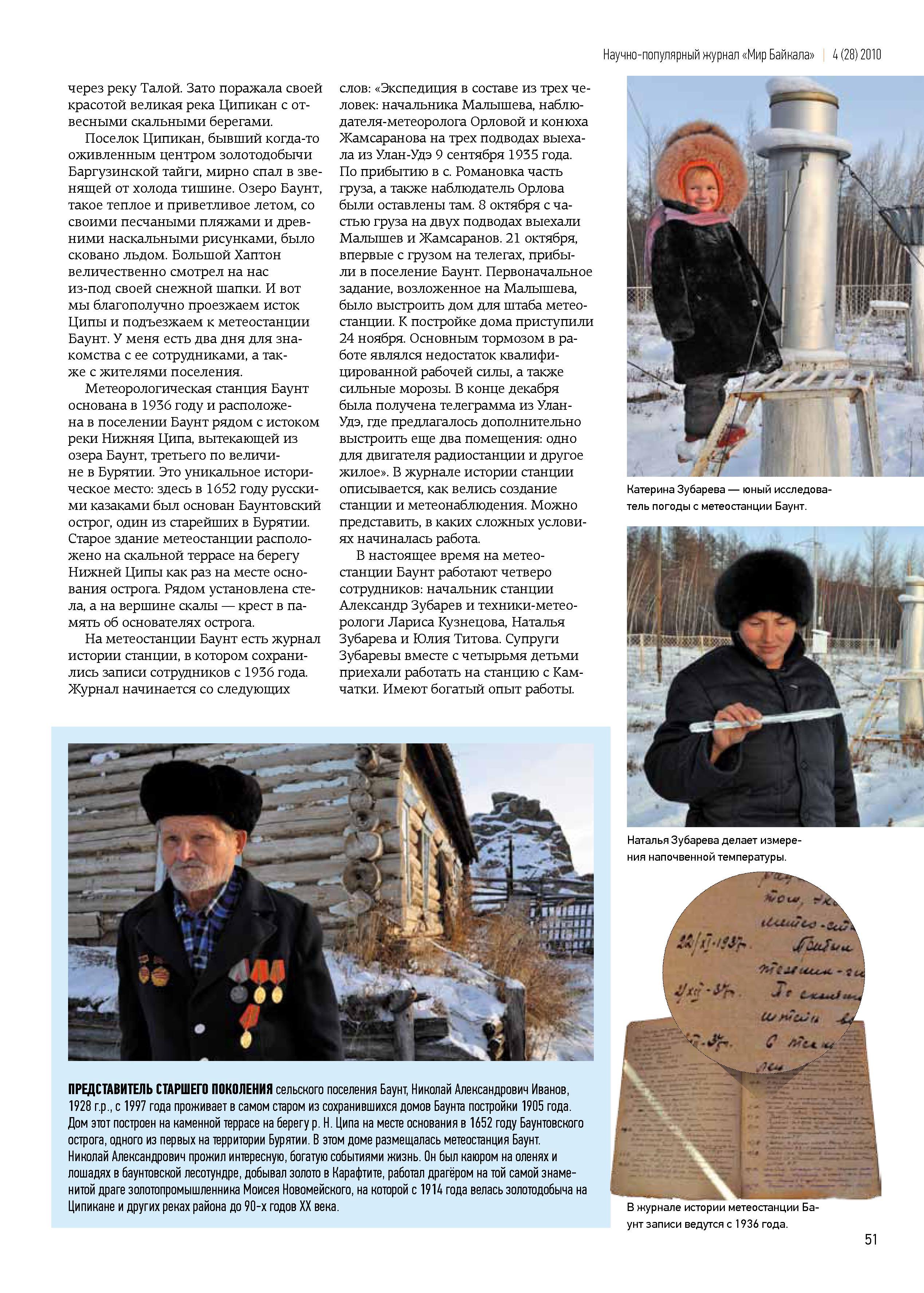Публикация в журнале "Мир Байкала" №4(28) 2010 г. (начало).