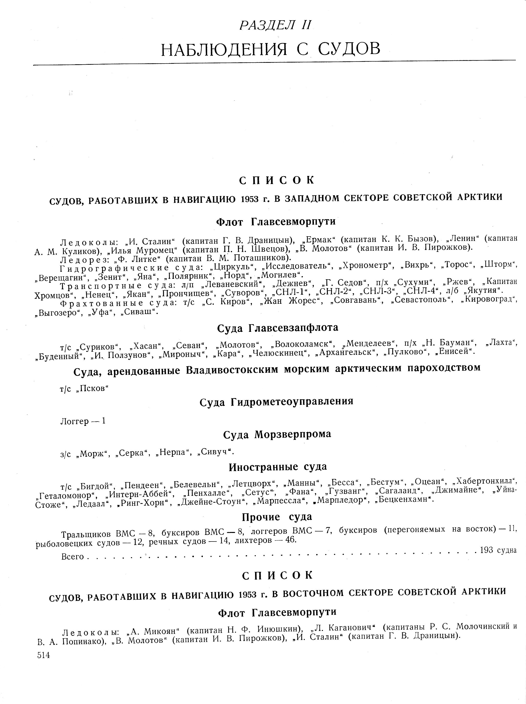[Ледовый ежегодник 1952/1953 года. Наблюдения над состоянием льда в Советских арктических морях зимой 1952/1953 года и в навигацию 1953 года. Под ред. С.В. Молькентина. Л., Морской транспорт. 1958. 686 с.]