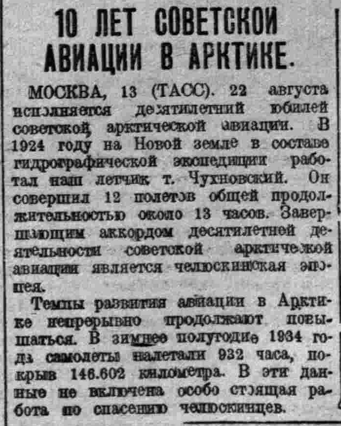 … Л. 27. Полёты на зимовках. В 1934г. зимовочные авиабазы имелись в б. Тихая, м. Челюскин, м. Шмидта, сел. Уэлен и б. Провидение.