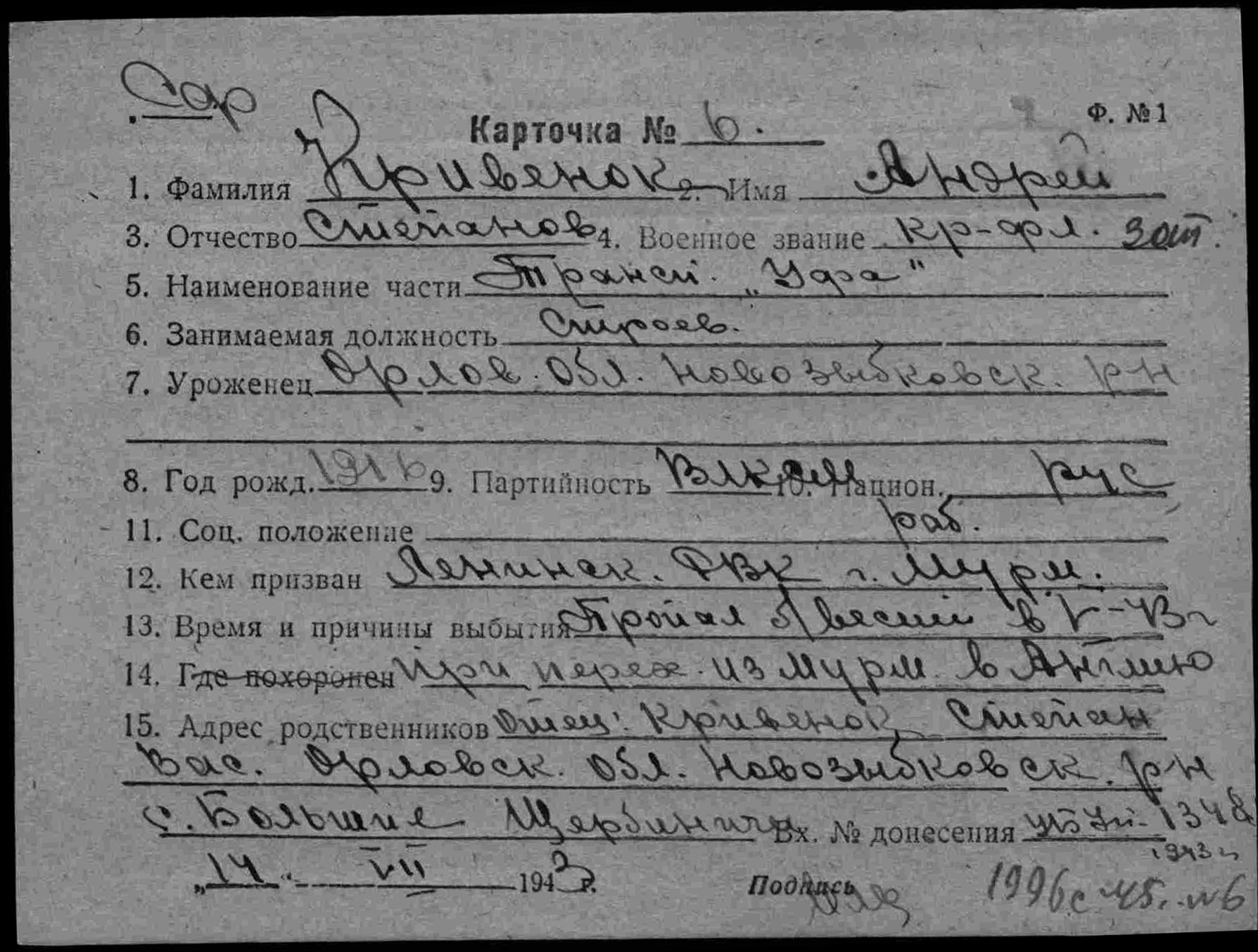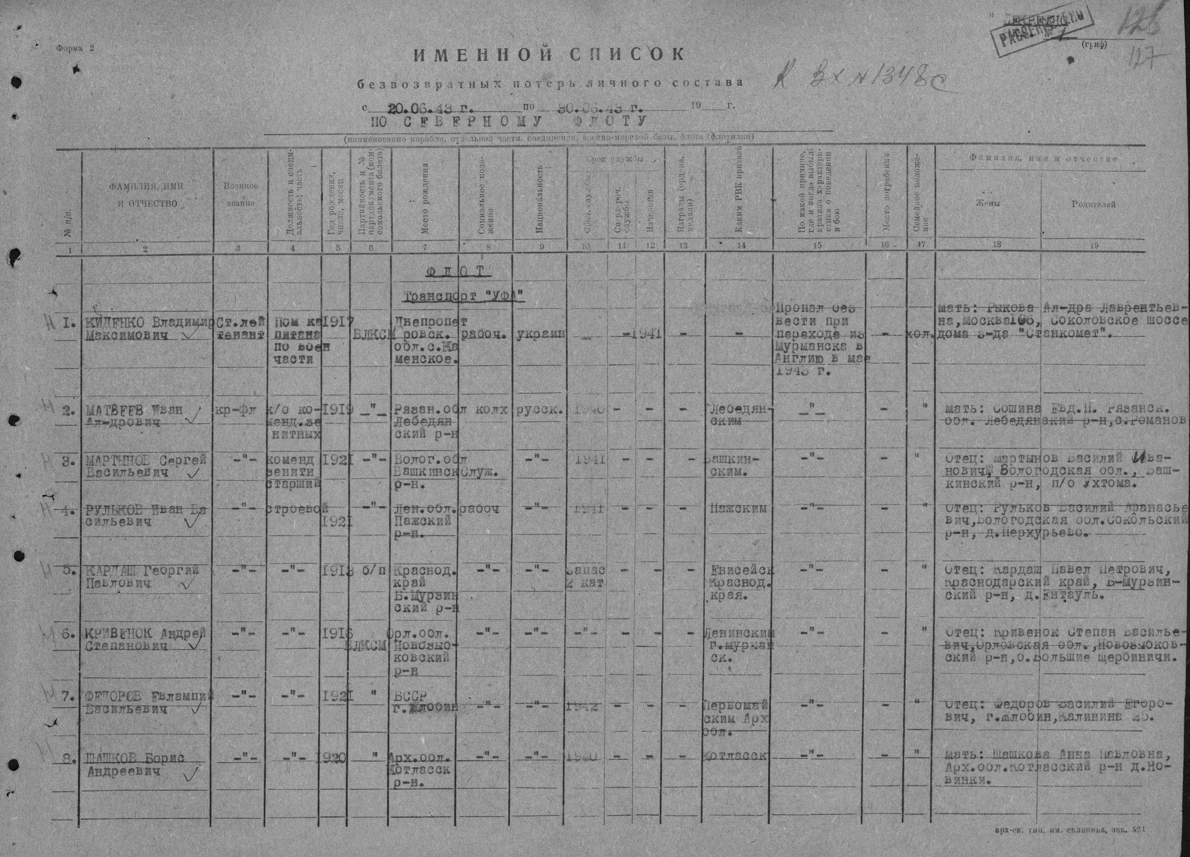 Дата и место гибели — 29.01.43, Баренцево море, к югу от о-ва Медвежий, 74° с.ш., 18° в.д.