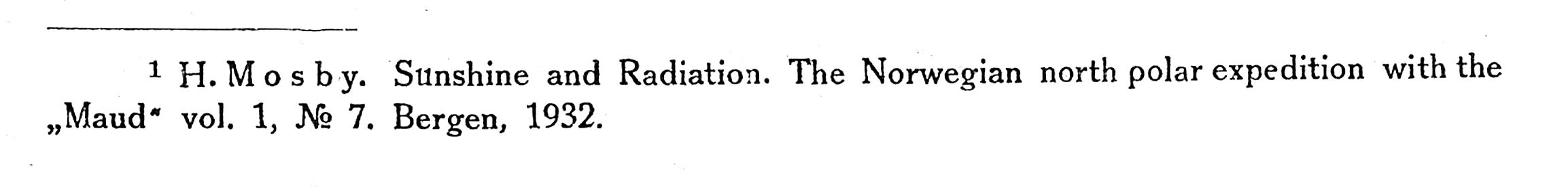 {1} Н. Моsbу. Sunshine and Radiation. The Norwegian North expedition with the "Maud" 1918-1925, vol. 1, № 7.