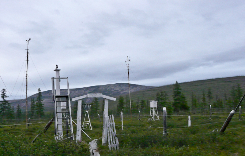 Метеостанция находится на некотором удалении от сравнительно оживленного в этом году Весеннего (километров 15 от, дорога на "Урале" занимает час и более) и месторождения Песчанка. Территорию занимают жилой дом, многочисленные теплицы и гаражи и собственно метеоплощадка. Еще в прошлом году все это хозяйство обслуживалось двумя семьями метеорологов, но, вероятно, на бытовой почве произошел разлад (что немудрено, впрочем), и одним пришлось съехать. Или "одним пришлось остаться", кому как больше нравится.