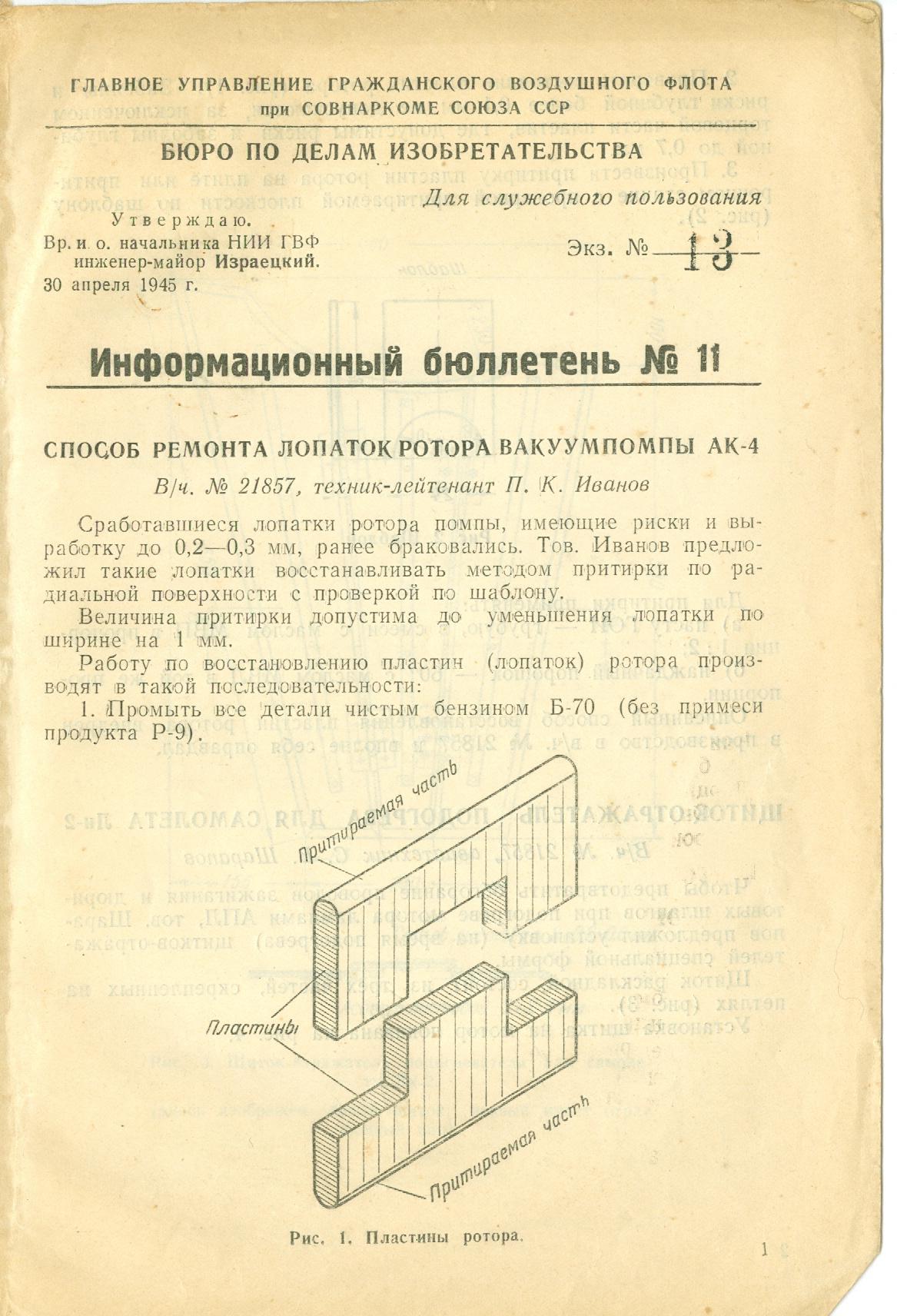 Информационный бюллетень №11 БРИЗ ГУ ГВФ, апрель 1945 г.