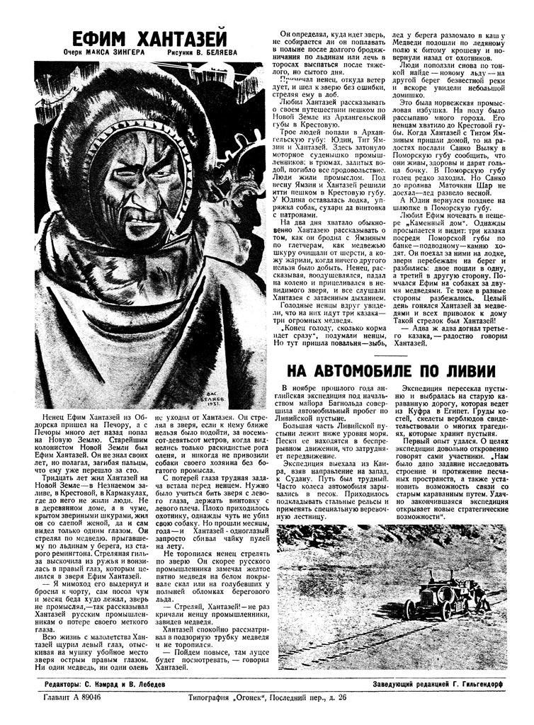 Очерк. «Известия ЦИК», 1928, 21. VII.