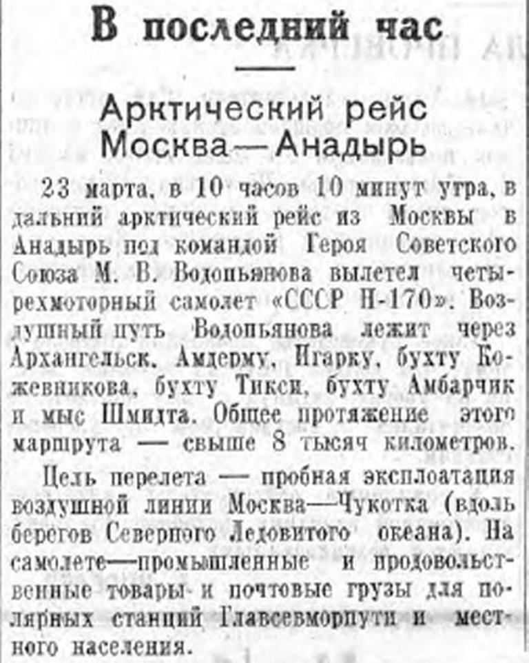 Кара пишет:Исходя из того, что в период 23.03.-24.04.1940 был выполнен коммерческий рейс Москва – Анадырь - Москва думаю, что часть Мазурука существовала наверное всё-таки по 13 февраля, а не марта. Вряд ли бы за 10 дней успели подготовить к нему самолёт