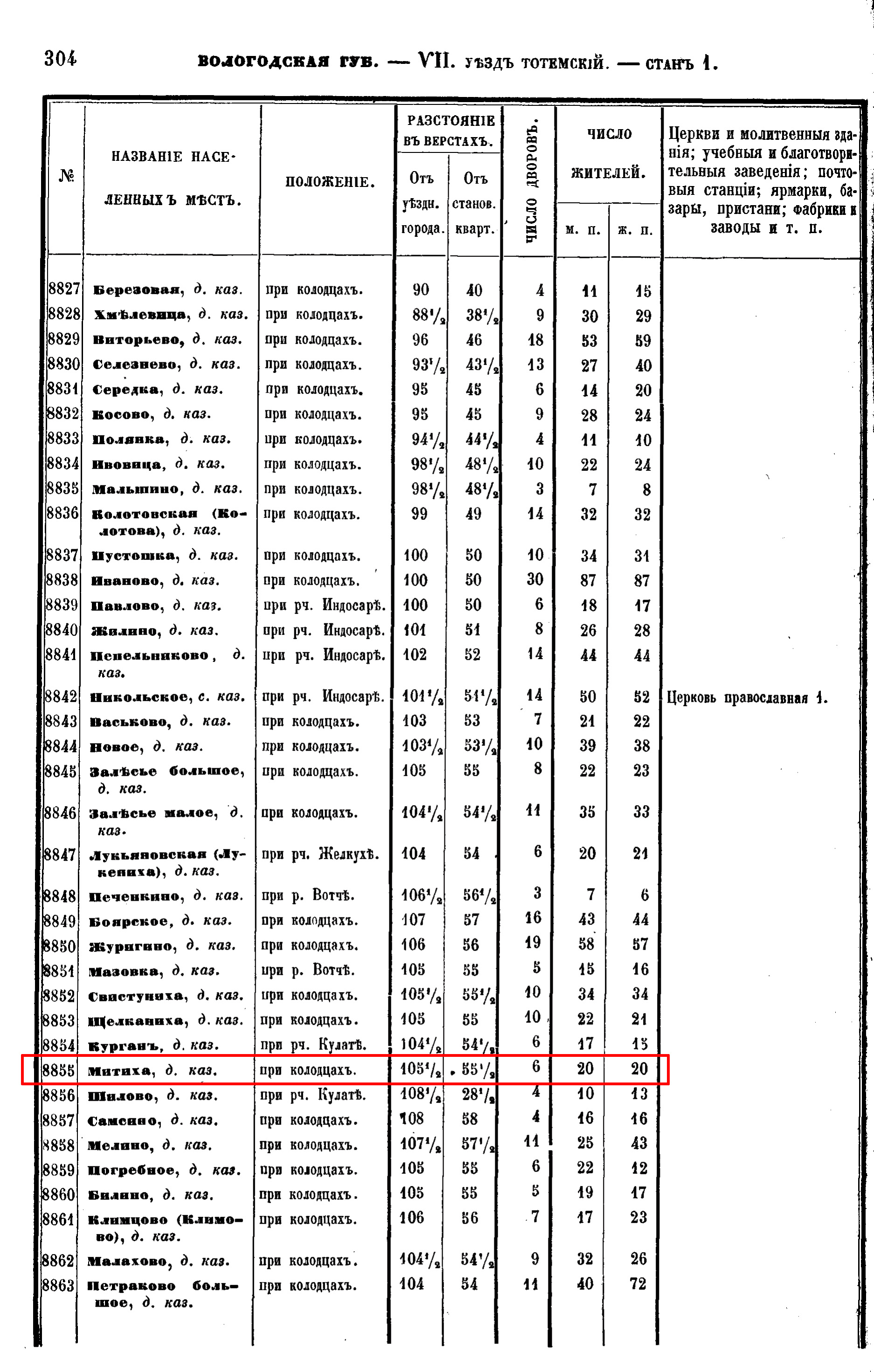 Не было в Никольском уезде деревни Митиха.