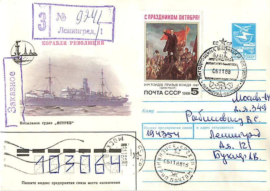 ЯСТРЕБ, с 31. 12. 1922 по 10. 10. 1923 — 16 Октября. Бывш. фин. товаро-пасс. п/х Боре-II, постр. в 1900 в Финляндии. 3. 3. 1916 моб., вооружено и в качестве сначала ПС, а затем стор. судна вкл. в сост. БФ. Участв. в 1-й мир. в., Февр. бурж. -демокр. рев., Октябрьском вооруженном восстании в Птгр 25. 10. 1917 и гражд. в. (Лед. пох. 7—20. 4. 1918; входило в сост. ДОТ). В период с 12. 1919 по 11. 1920 и с 18. 6. 1921 по 2. 1. 1922 находилось в распоряжении Главода, после чего было перекласс. в ПБС. 7. 2. 1923 сдано в порт на хранение, а 10. 10. 1923 разоружено, передано НКПС и искл. из списков МСБМ. Впоследствии входило в сост. ЧГМП и СГМП НКМФ. 1. 9. 1930 затонуло в Ковде в результате навигационной аварии. В 7. 1931 поднято и вновь введено в строй. 2. 7. 1941 моб. и в качестве ПС вкл. в сост. БВФ СФ. Участв. в ВОВ. Имело борт. № 49. 2. 2. 1944 переоборудовано в ПБС АСС СФ. 17. 1. 1946 возвращено МГМП НКМФ и 22. 1.1946 искл. из сост. ВМФ. С 1960 использовалось для обеспечения базирования атомного ЛЕД «Ленин». В 1963 выведено из эксплуатации, искл. из списков ММФ и разобрано в Мурманске на металл.