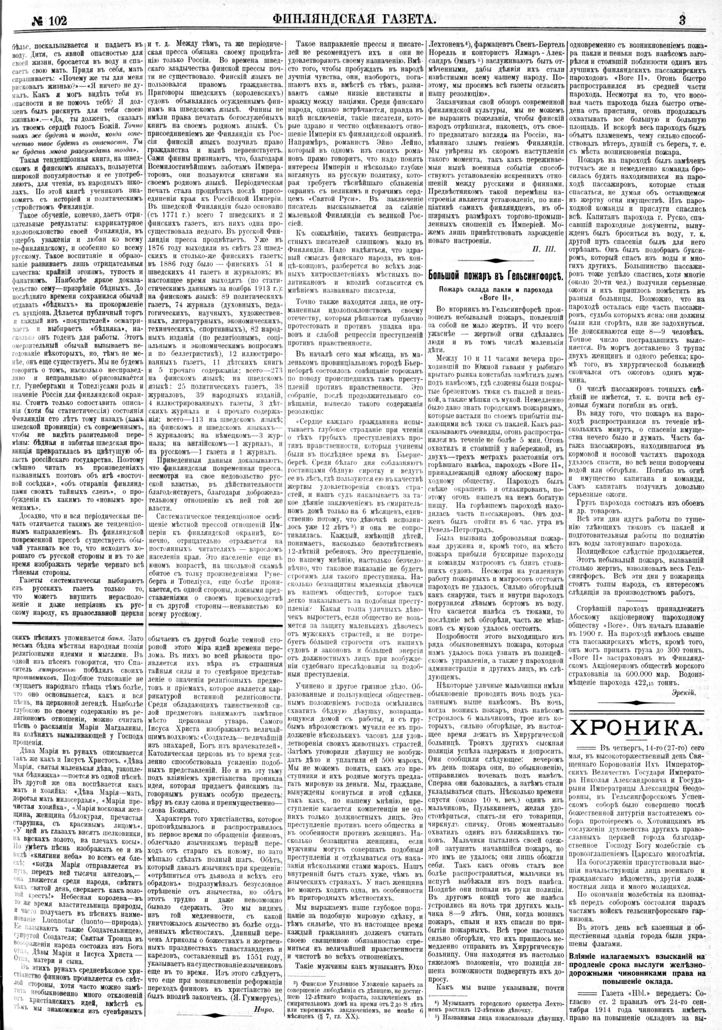 "Финляндская газета" подробно описала пожар и его причины на пароходе Bore II 25 мая 1915 г. в Южной гаване Гельсингфорса. Статью из газеты от 29 мая 1915 г. можно прочитать на https://digi.kansalliskirjasto.fi/sanom ... 280?page=3