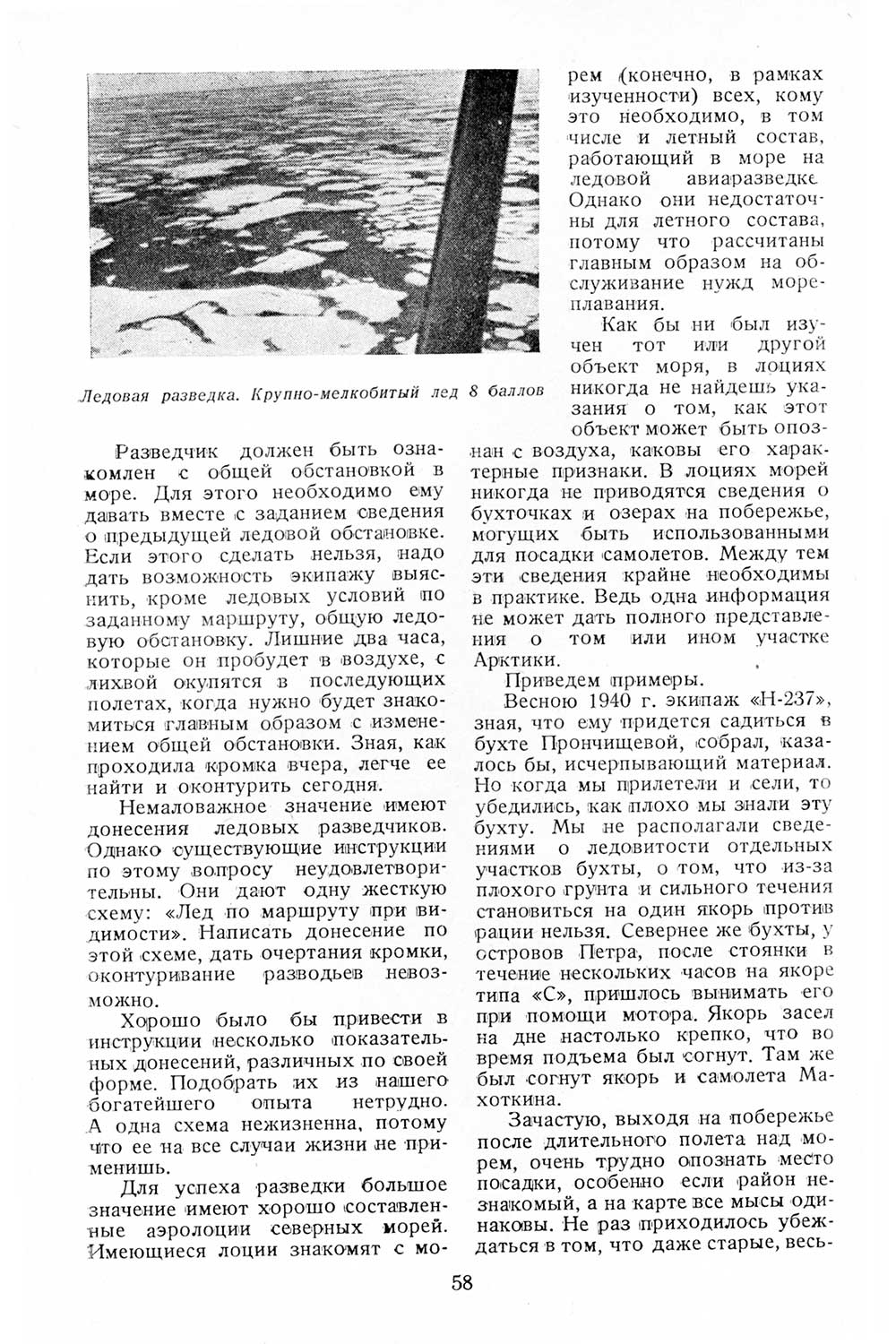 Раннюю преднавигационную ледовую разведку, помимо тт. Черевичного и Асямова, в Арктике ведут летчики и штурманы тт. Еременко, Бузаев, Жадринский. Панюшкевич и другие Собранные ими данные включаются в карты ледоных прогнозов к предстоящее арктической навигации.