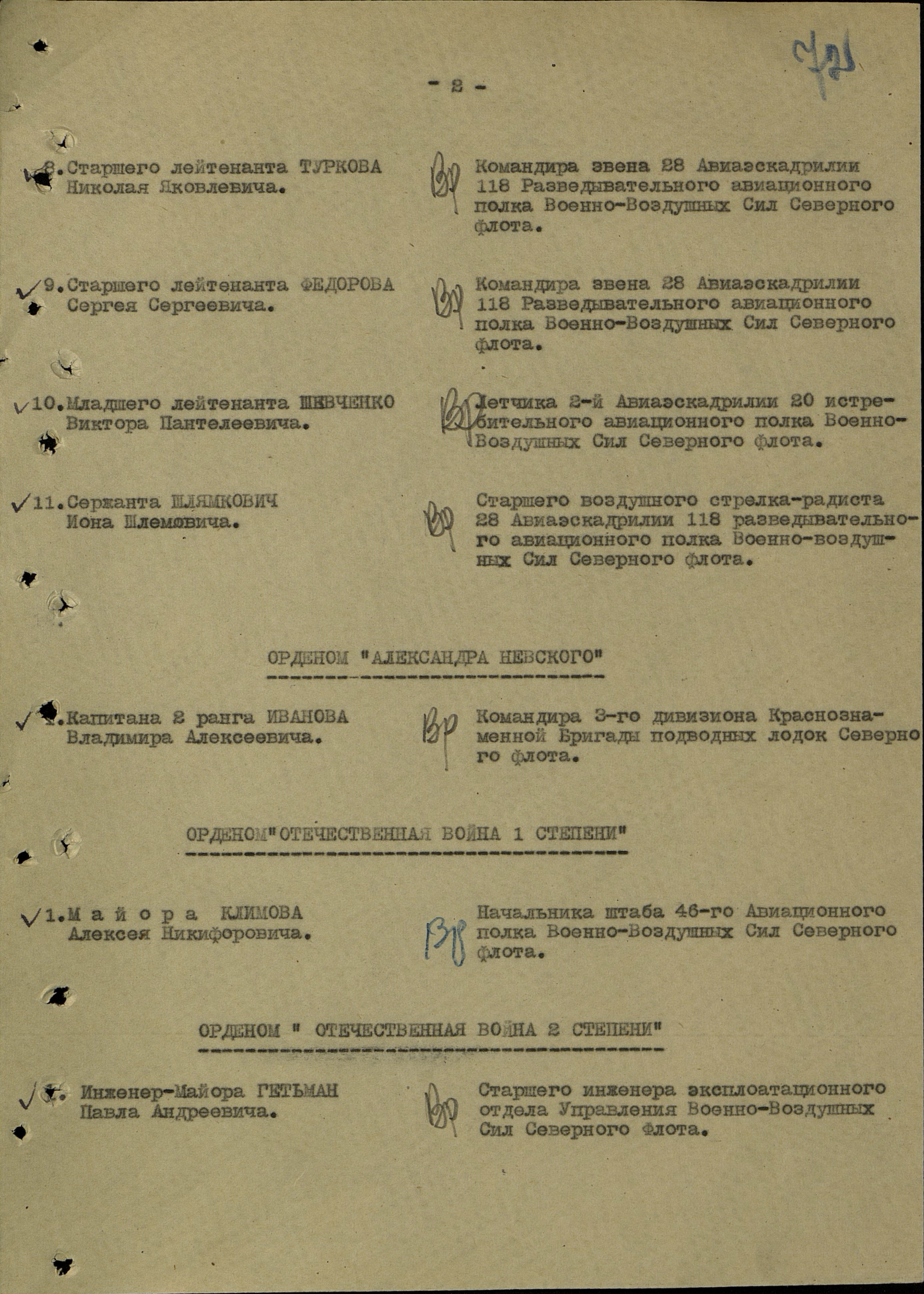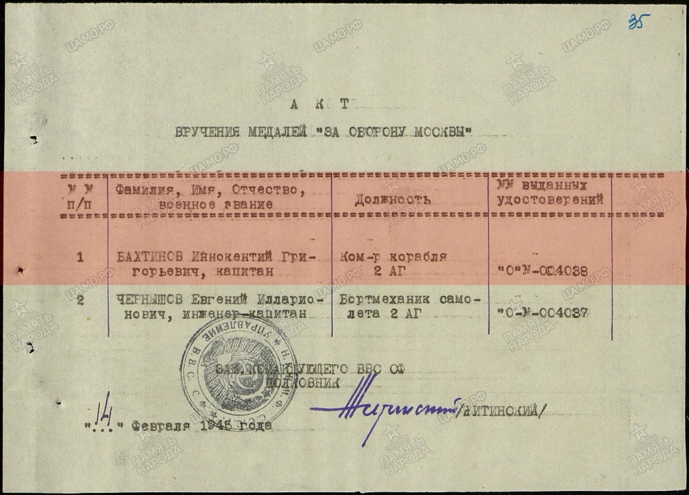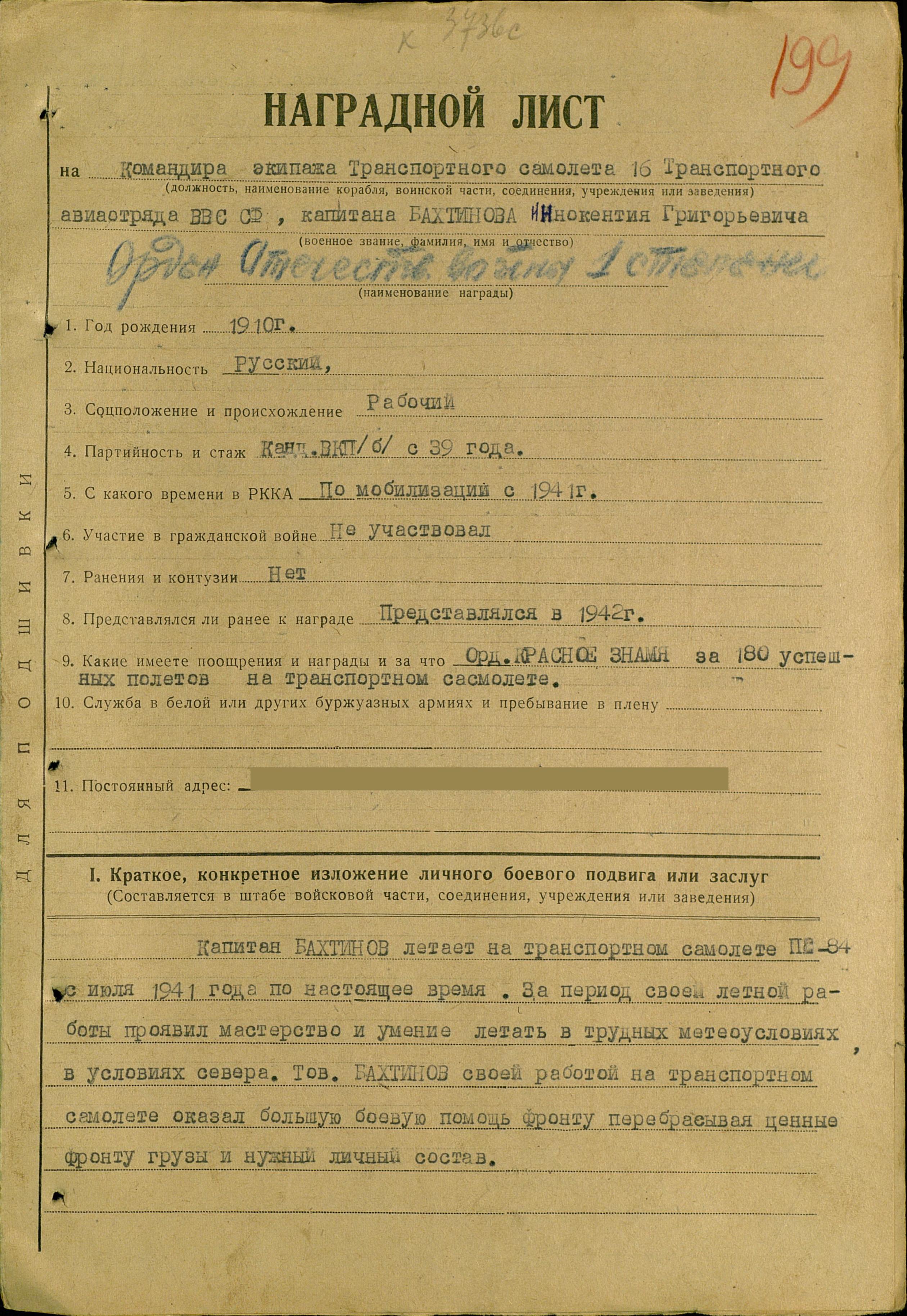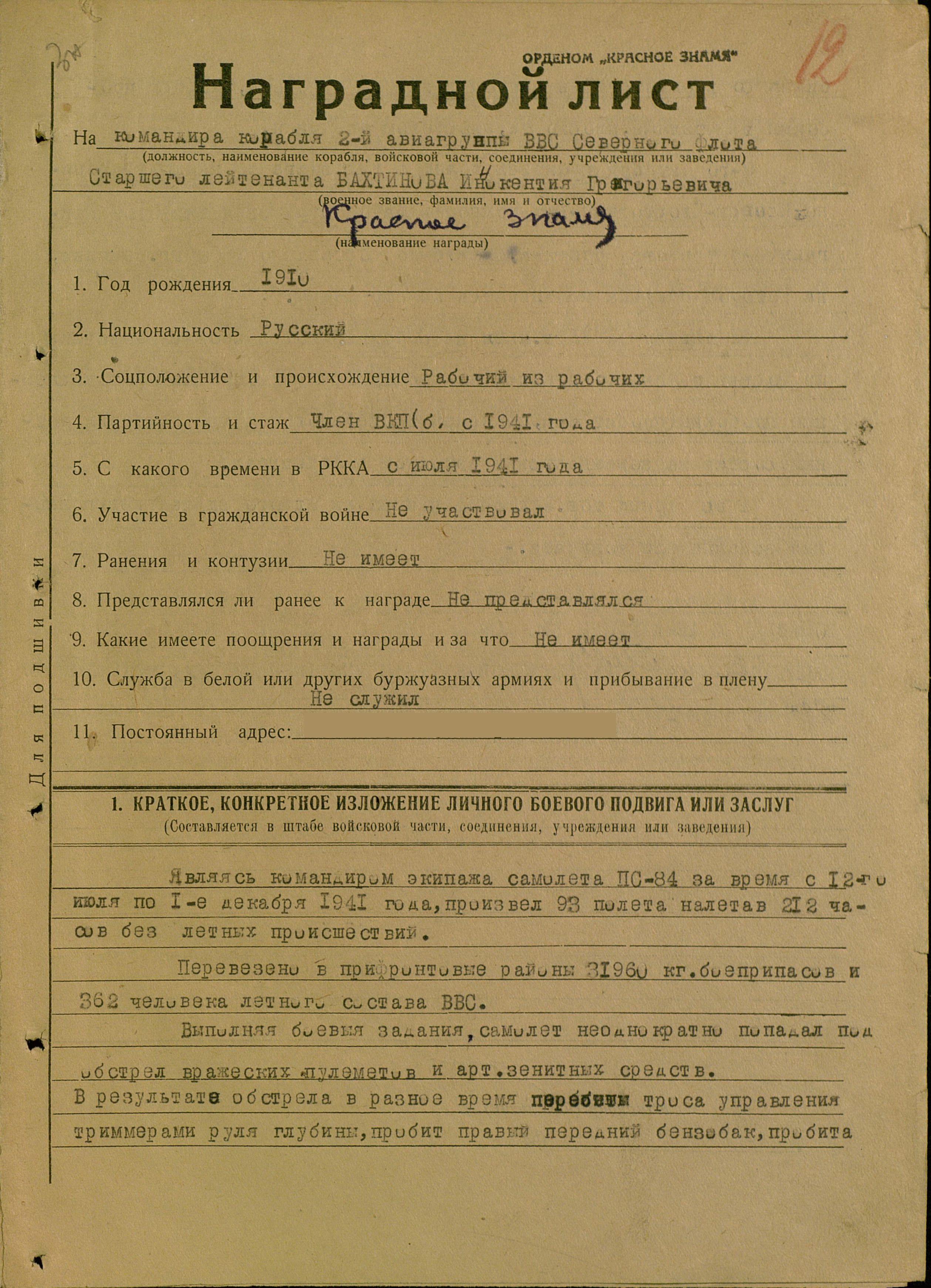 Наградной лист: Архив ЦВМА фонд 3 опись 1 единица хранения 480