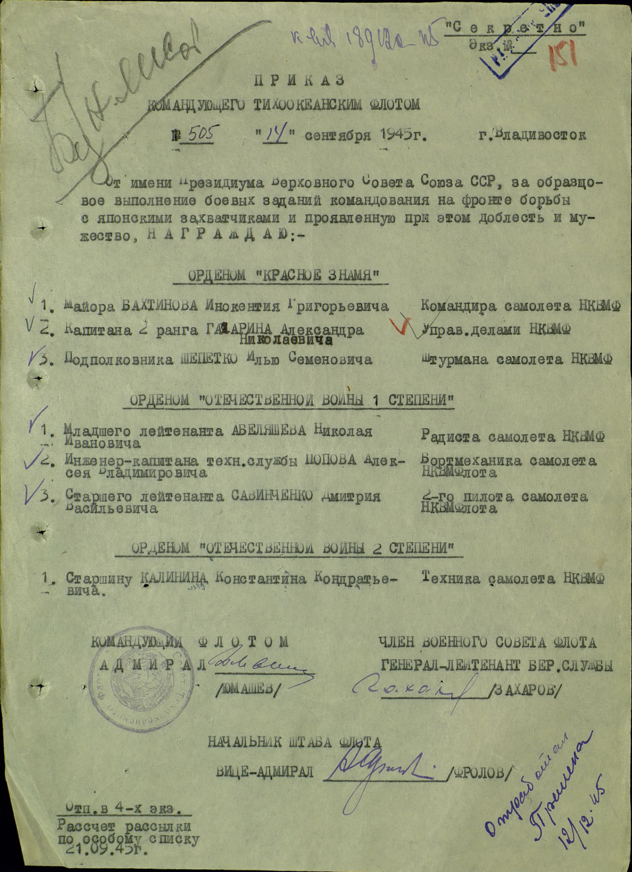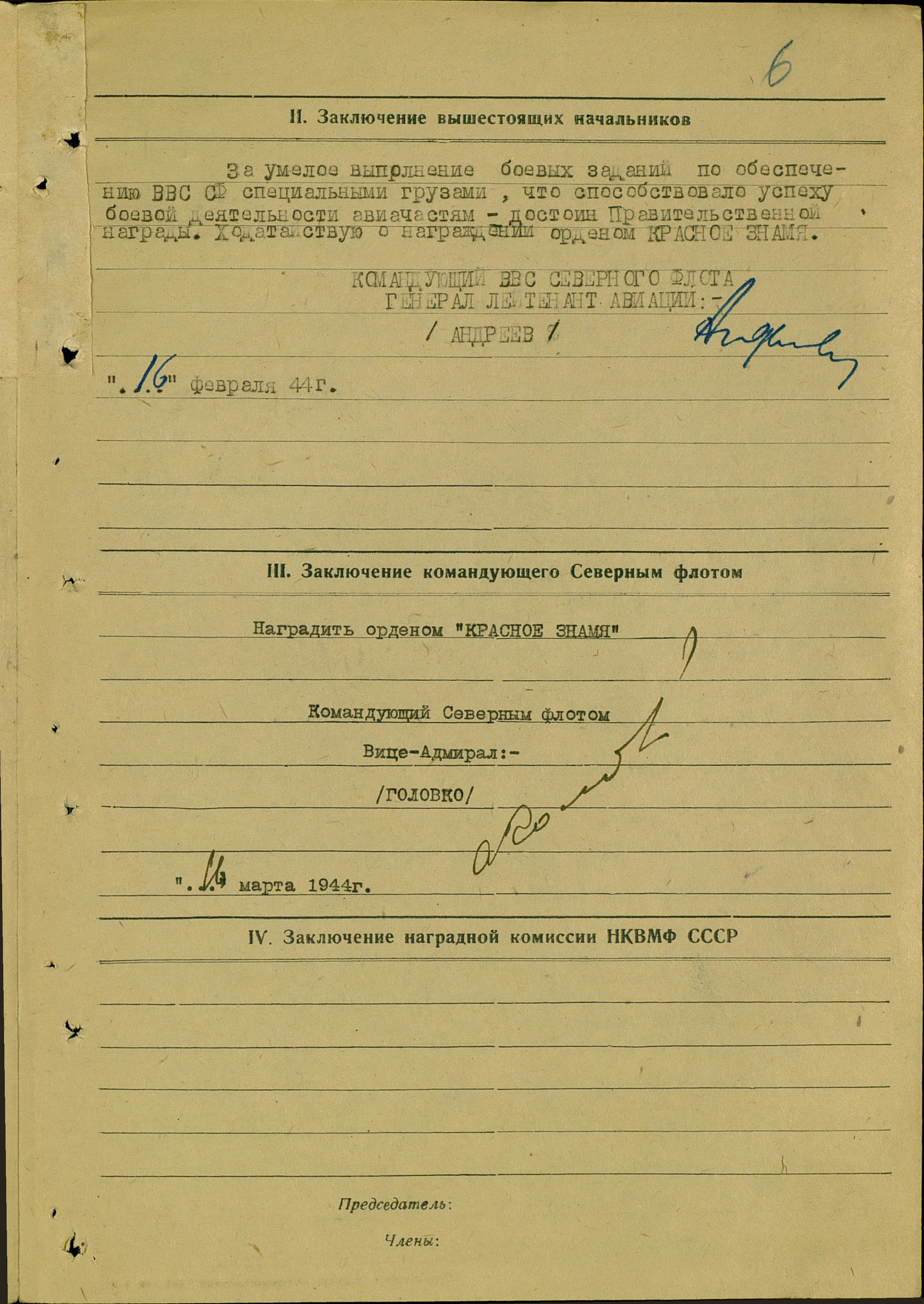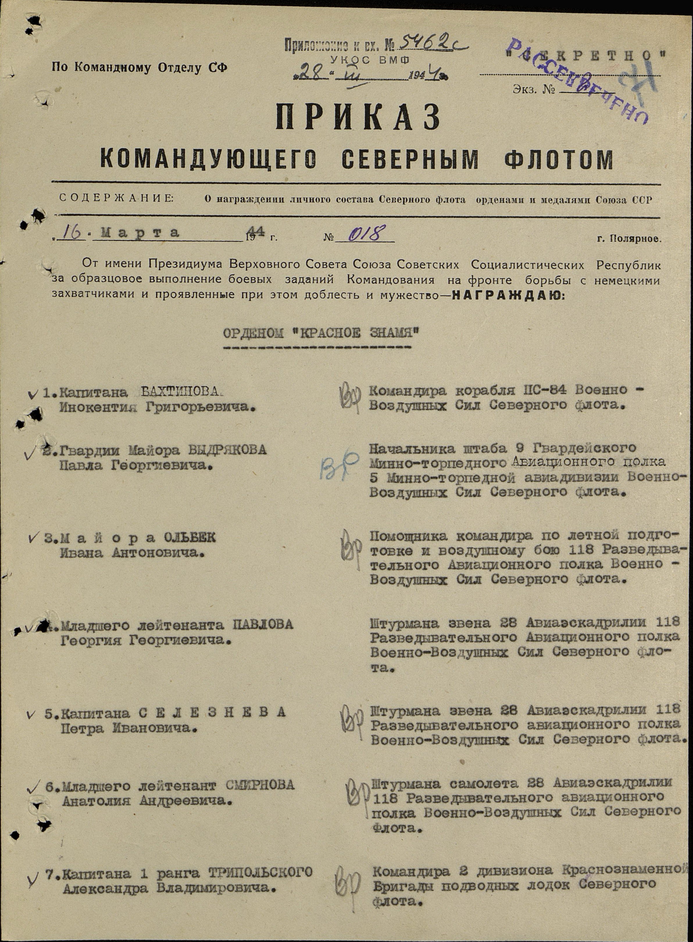 Приказ флота (флотилии)№: 18 от: 16.03.1944