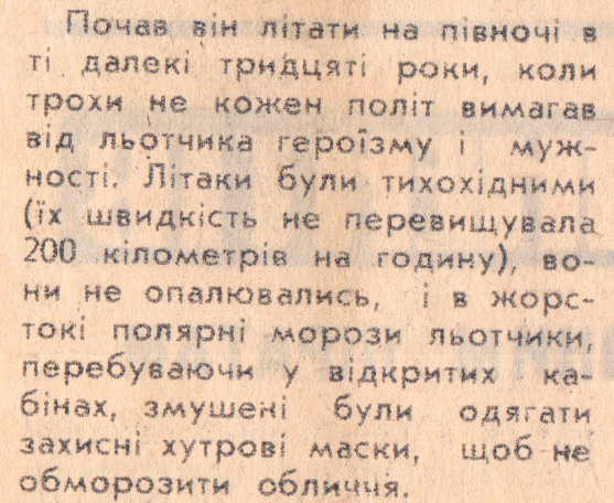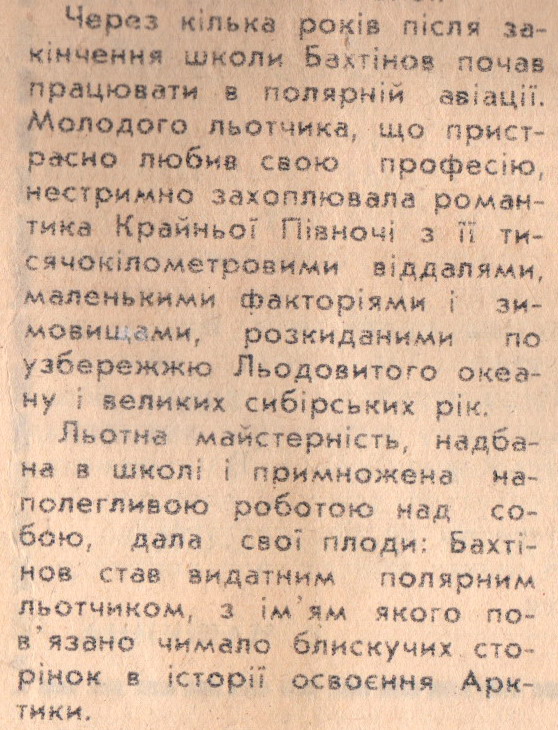 Весь путь пилот Бахтинов проделал за З 1/2 часа при 28-градусном морозе.