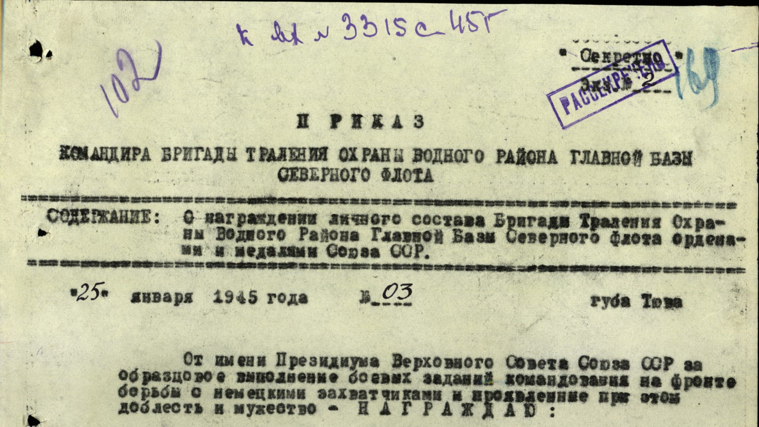 Наградные документы.