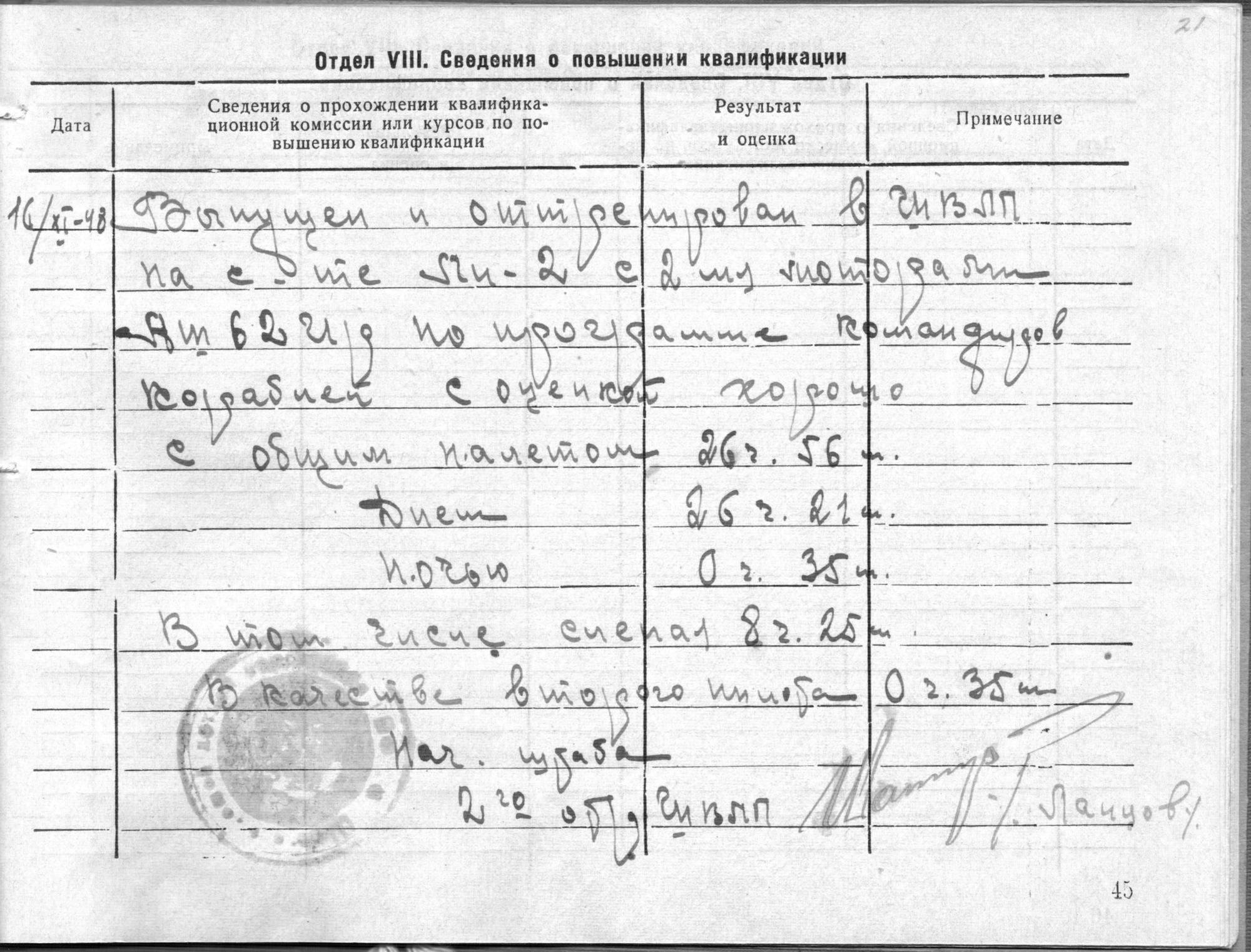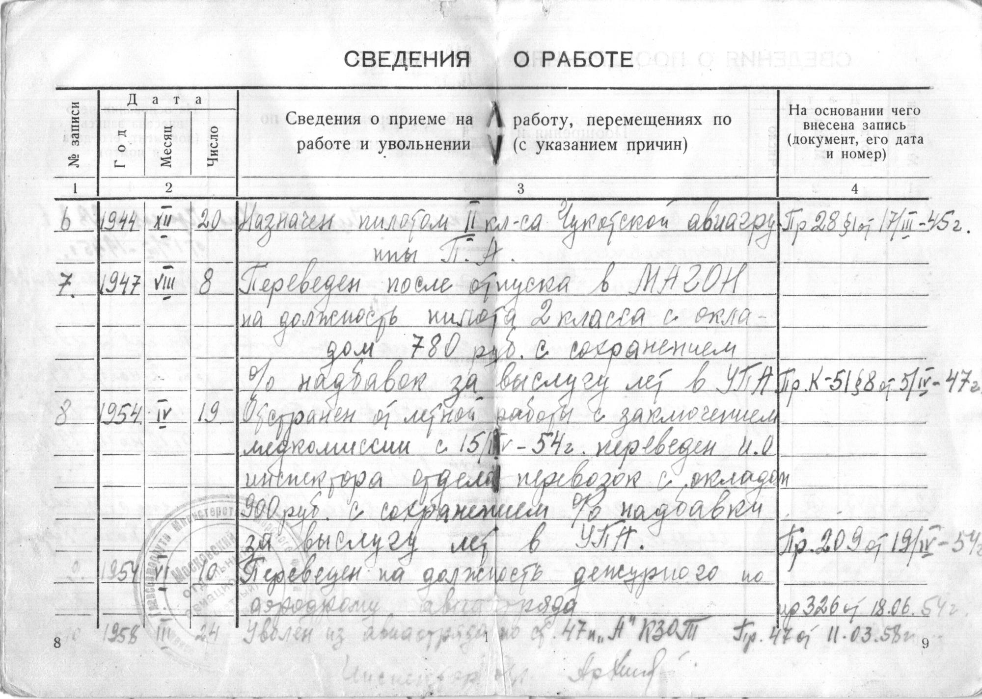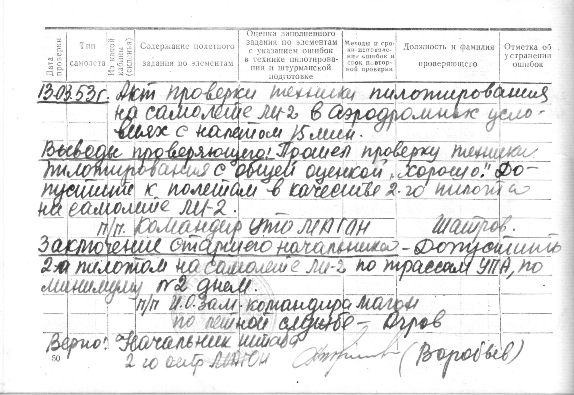 Судя по отсканированной лётной книжке, его всё-таки не сняли совсем с лётной работы).