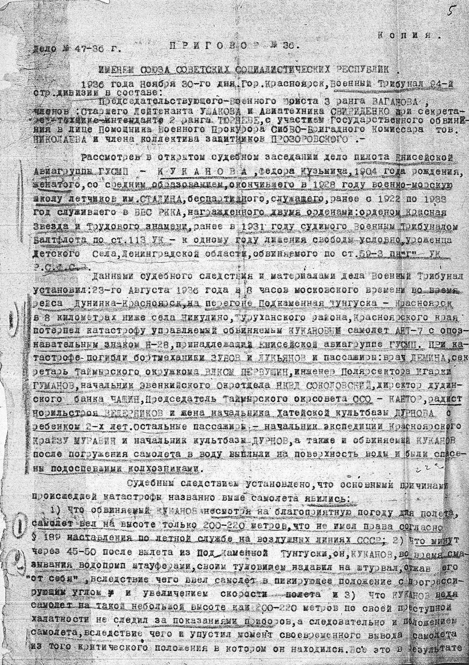 2. Недисциплинированность и зазнайство пилота Куканова, выразившееся в том, что он: а) при эксплуатации моторов допустил длительную перегрузку их; б) среди экипажа создал склоку и внёс в работу нервозность, проявил к пассажиру Вяльцеву (в а/п Ленск) следующему заместителем командира Чукотской АГ грубость и нетактичность; в) самовольно изменил маршрут; г) встретив на маршруте Зырянка-Чокурдах низкую облачность, не возвратился обратно; д) при вынужденной посадке на косу, размер которой заранее исключал возможность безопасной посадки, он выпустил шасси, чем в большей степени подверг риску жизнь членов экипажа и пассажира, а также и усугубил размеры повреждения материальной части.