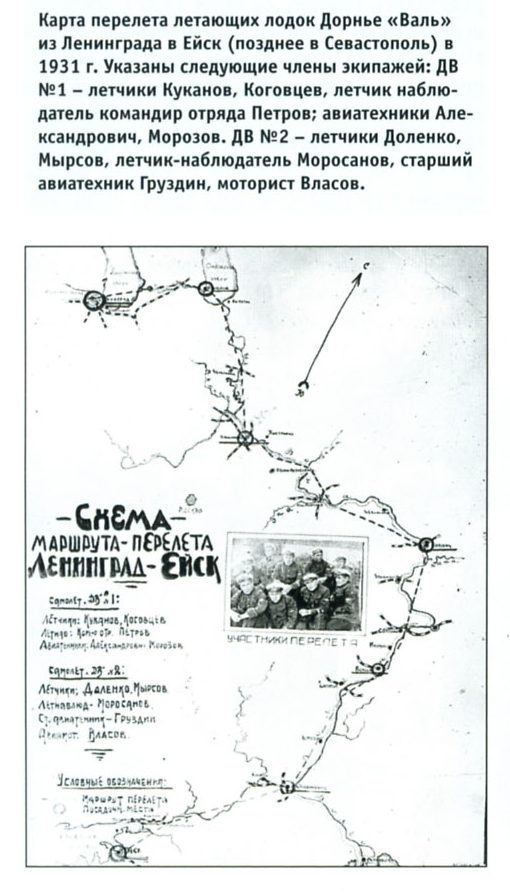 Просто попадалась информация о перелёте 1931 года на двух самолётах Дорнье-Валь по маршруту Ленинград - Ейск - Севастополь, где участвовали в частности Мырсов, Моросанов и Куканов. Возможно, это фото 1931 года..