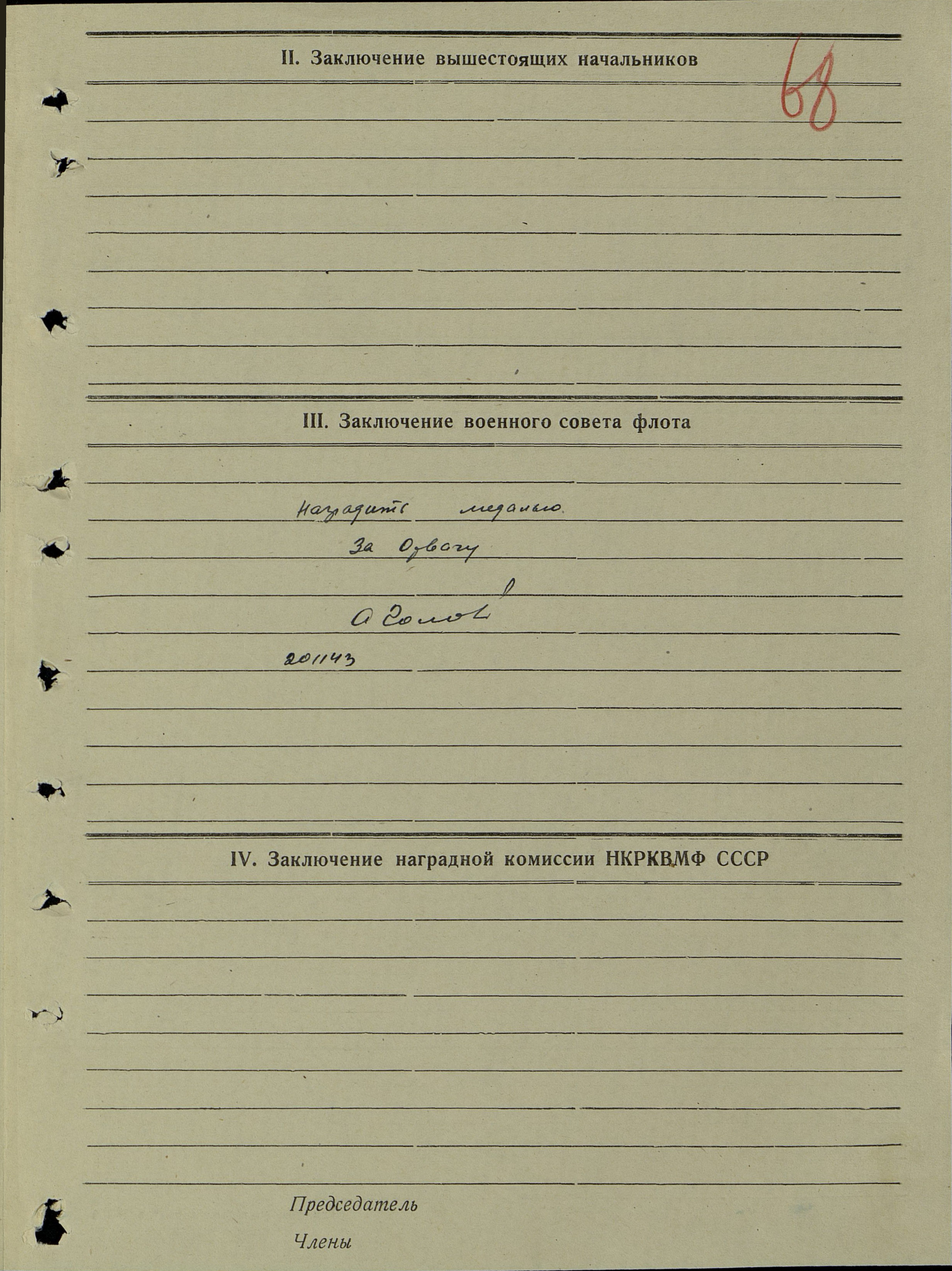 Воробьев Михаил Ефимович, спасен; воинское звание – краснофлотец (ст. краснофлотец); должность (специальность), часть – комендор, тральщик ТЩ-114 6 ДТЩ Бригада траления ОВР ГБ СФ; год рождения – 1920; партийность – кандидат в члены ВКП(б) с 1942 г.; социальное положение – колхозник; национальность – русский; служба в армии – в РККА с 1940 г.; награды – медаль «За отвагу»; дополнительная информация – имел плечевое осколочное ранение на Ленинградском фронте, имел благодарности от наркома ВМФ, командующего СФ, командующего БВФ, участвовал в боях за г. Ригу, г. Пярну (Эстония), за г. Ленинград, где был ранен 09.1941 г., в 10.1942 г. был зачислен в спецкоманду и направлен в США для выполнения правительственного задания, участник потопления двух ПЛ противника.