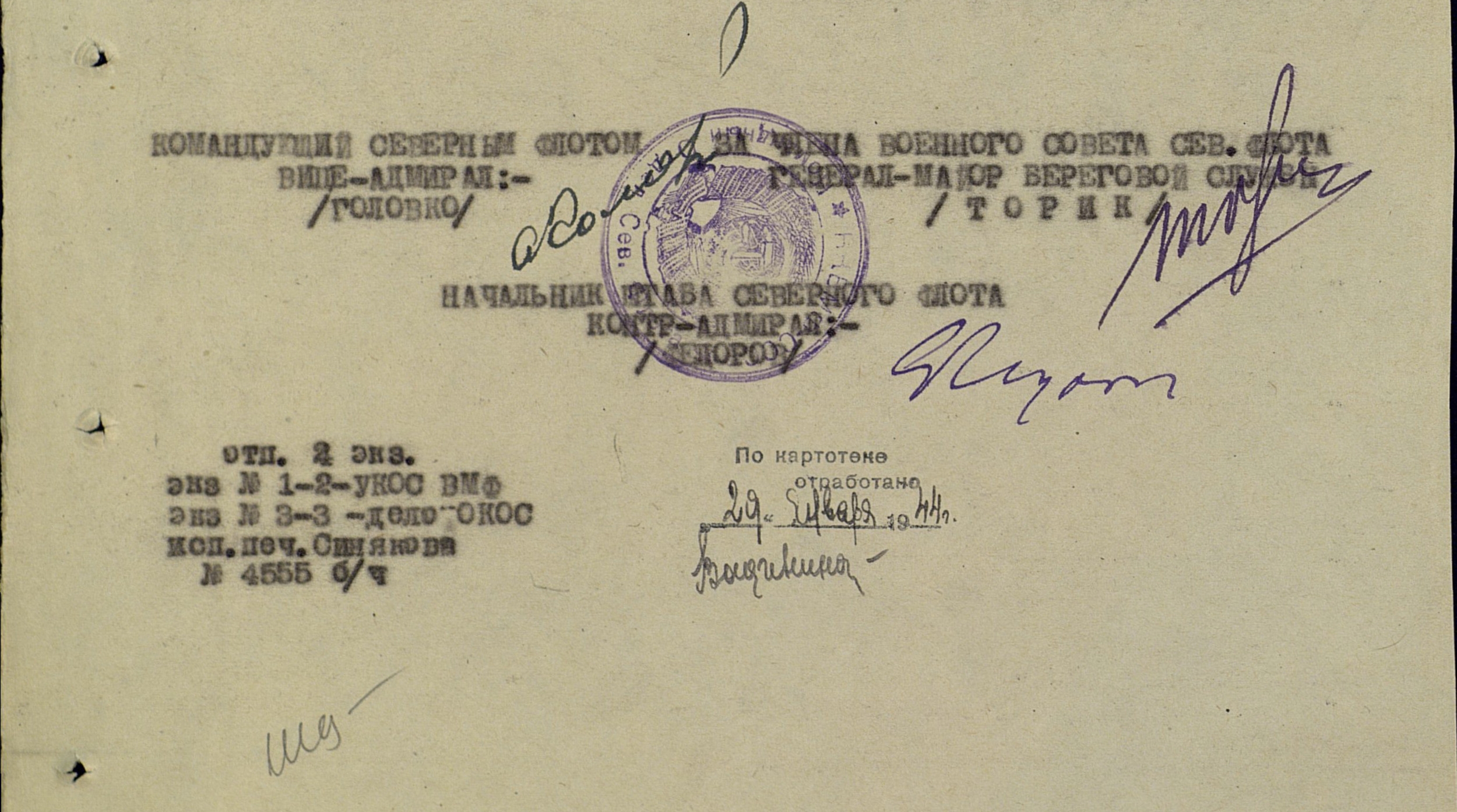 Донесение о безвозвратных потерях исх 0282 от 02.09.1944 (ЦВМА, Ф. 3303, О. 21874, Д. 2).