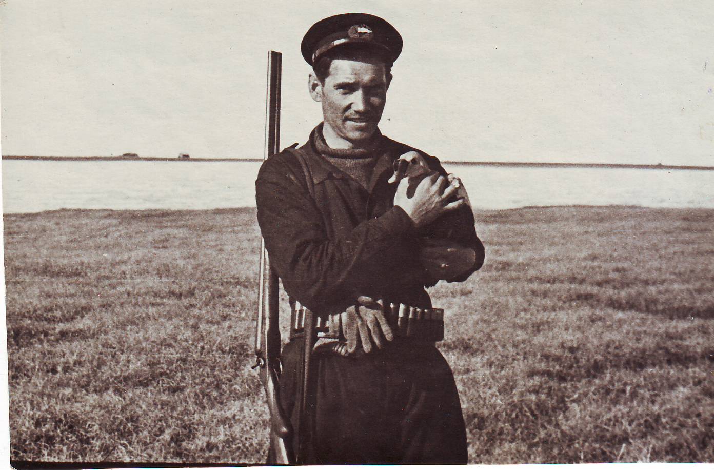 На охоте. П.с. Биллингс, июль 1941 г. На охоте с подбитой уткой.