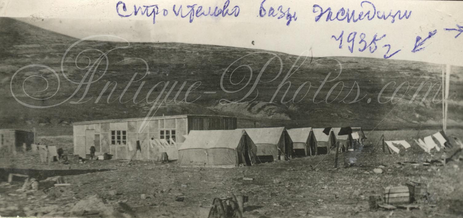Фото № 45. "Строительство базы экспедиции, 1935 г. Бухта Угольная, 1935/36 г.".
