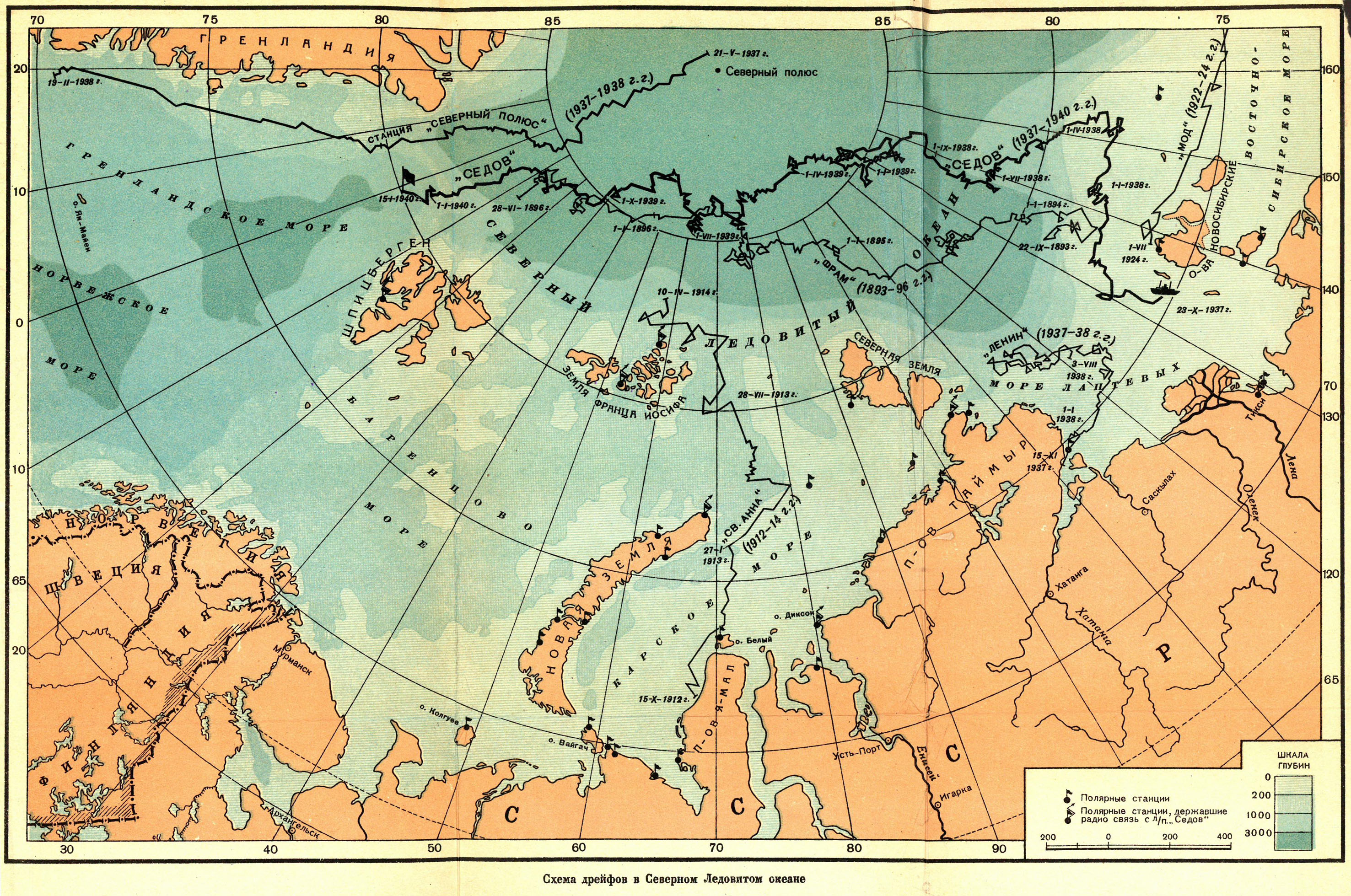 Следующей экспедицией, которая собрала большой научный материал о Центральной Арктике, была Советская дрейфующая экспедиция Папанина на Северный полюс. Дрейфующая зимовка, как известно, была доставлена на исходную точку своего дрейфа с помощью мощных самолетов. Экспедиция могла выбрать по произволу начальную точку дрейфа. Это отличало Советскую дрейфующую экспедицию от того, что делал Нансен.