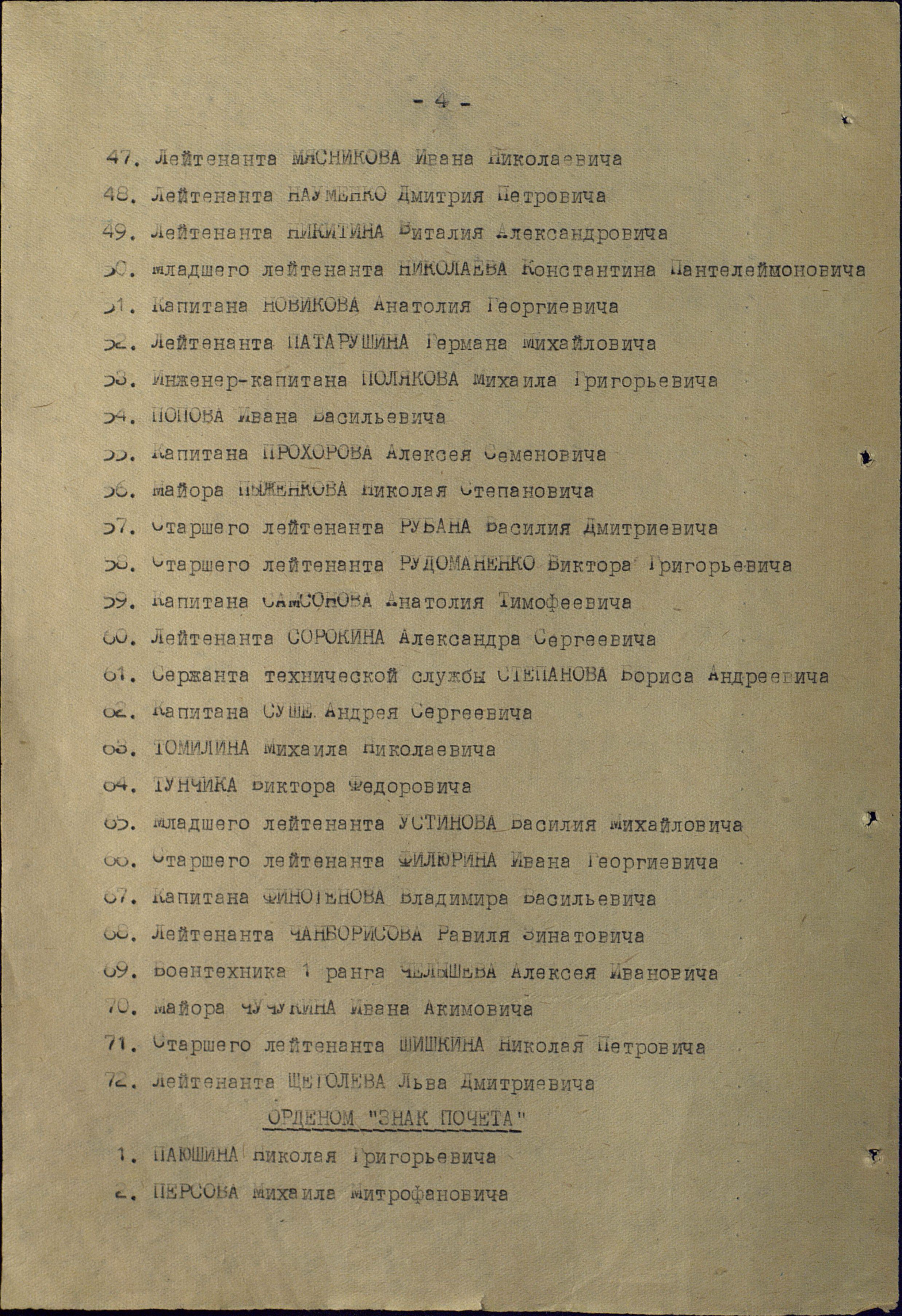 Л. 119. Список личного состава Главсевморпути при СНК СССР особо отличившегося при проведение Высокоширотных Арктических экспедиций «Север-2» 1948 года и «Север-4» 1949 года представленного к правительственным наградам.