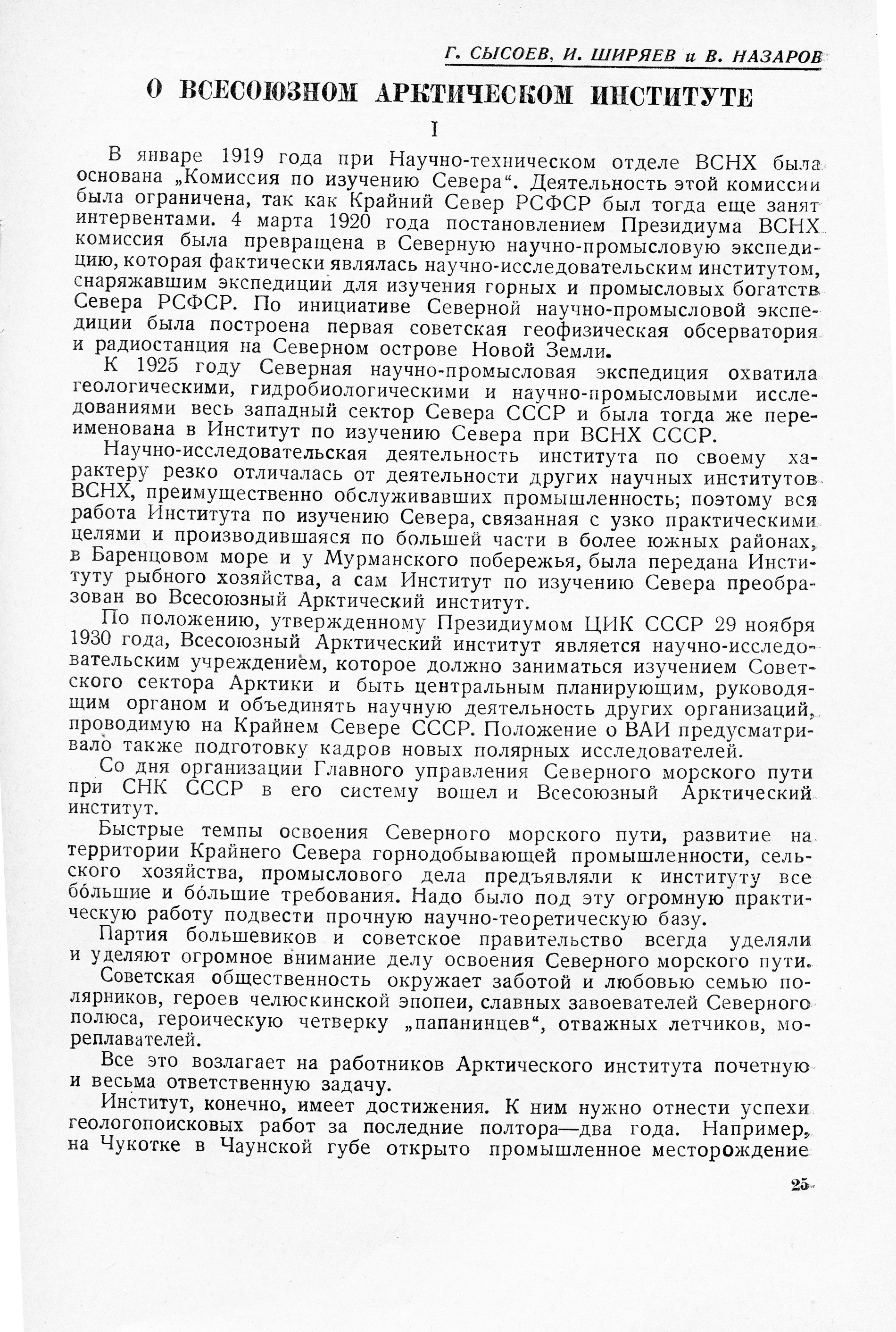 О Всесоюзном Арктическом институте // "Советская Арктика", 1938, № 5, с.25-31.