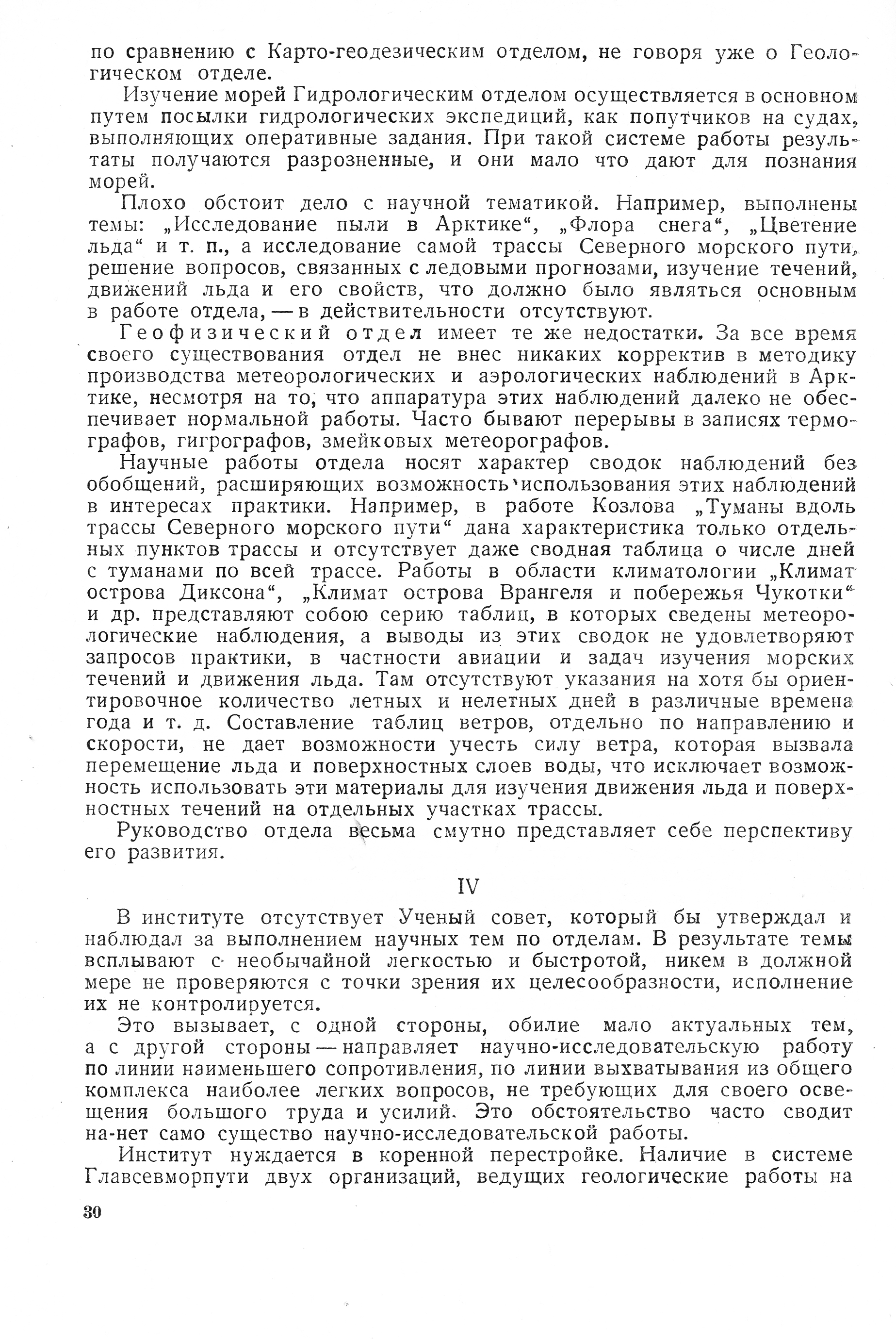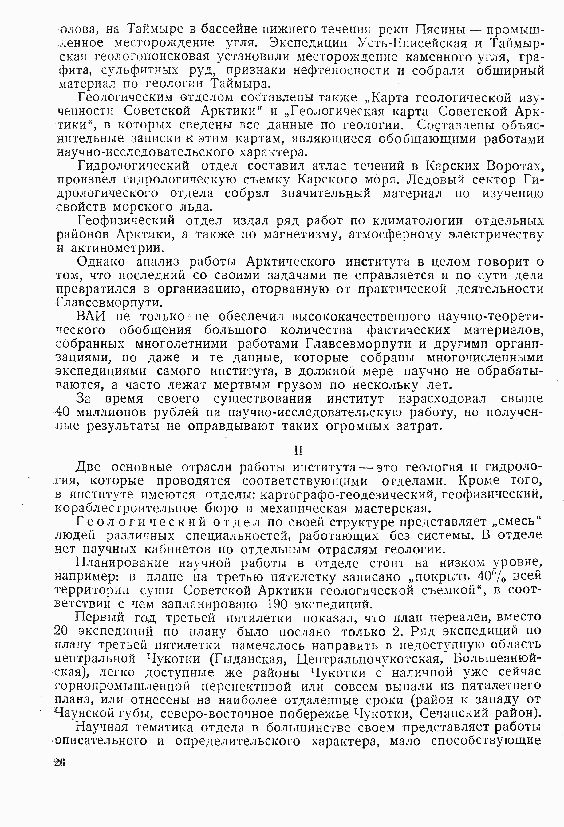 ВАИ не только не обеспечил высококачественного научно-теоретического обобщения большого количества фактических материалов, собранных многолетними работами Главсевморпути и другими организациями, но даже и те данные, которые собраны многочисленными экспедициями самого института, в должной мере научно не обрабатываются, а часто лежат мертвым грузом по несколько лет.