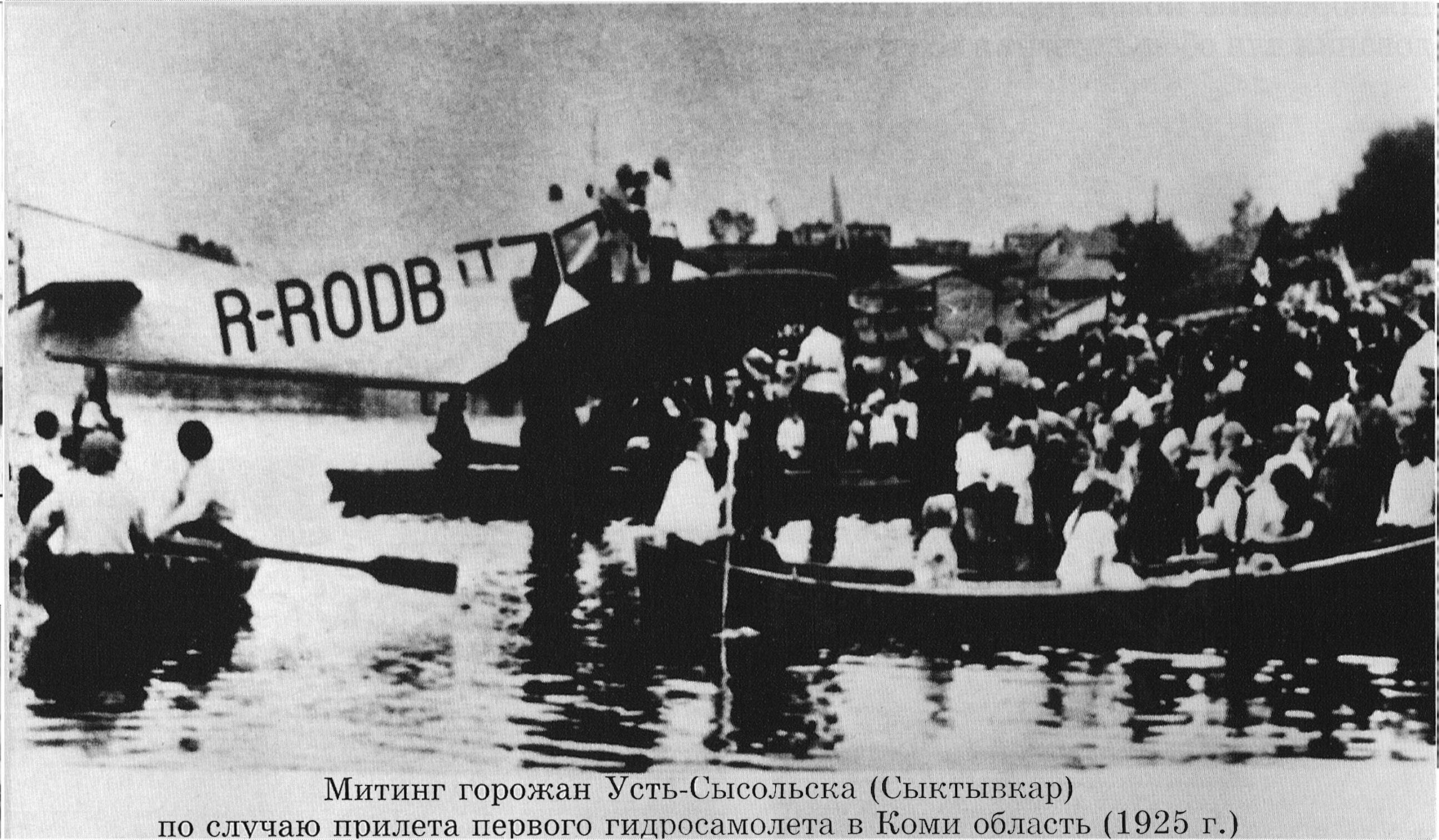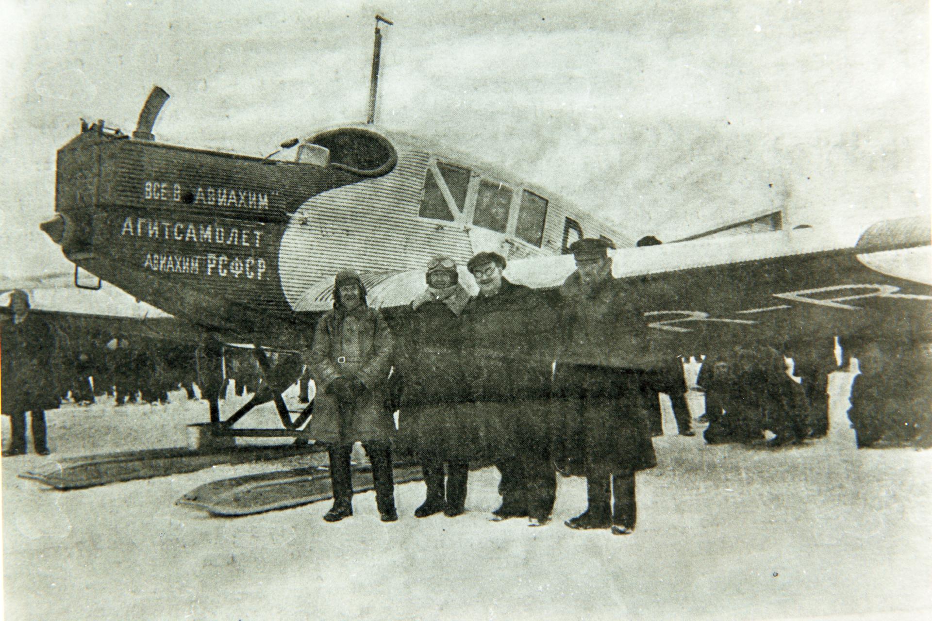 Совершающий северный агит-полет самолет "Все в Авиахим" под управлением известного нам (в 1925 г.) пилота тов. Копылова и его неизменного борт-механика тов. Клочко, с уполномоченным от ОСОавиахима РСФСР тов. Эйзнер сегодня прилетит в Вологду из Вятки.