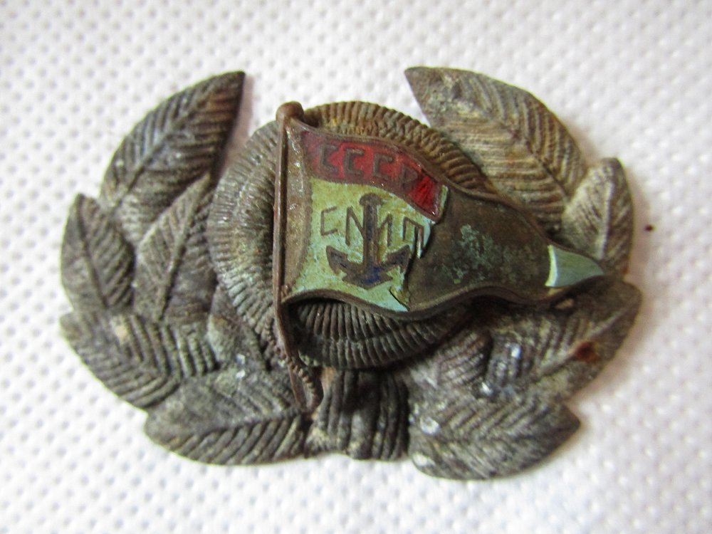 Кокарда - наиболее трудозатратная часть проекта. Оригинальные элементы найти не смог, посему была взята кокарда Минморфлота периода эдак 70-х гг. и при помощи маникюрных ножниц лишена центрального убранства...