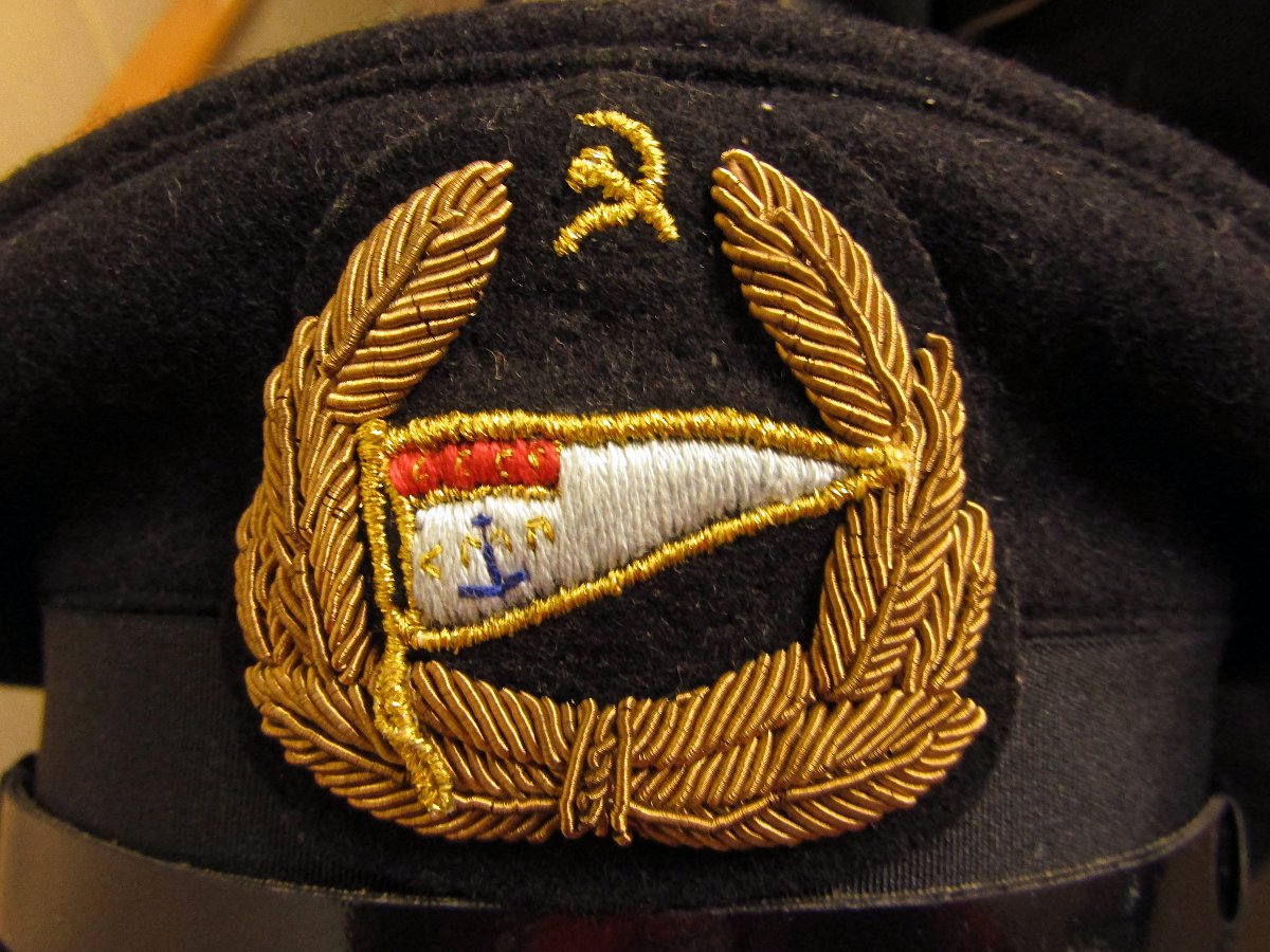 Кокарда - наиболее трудозатратная часть проекта. Оригинальные элементы найти не смог, посему была взята кокарда Минморфлота периода эдак 70-х гг. и при помощи маникюрных ножниц лишена центрального убранства...